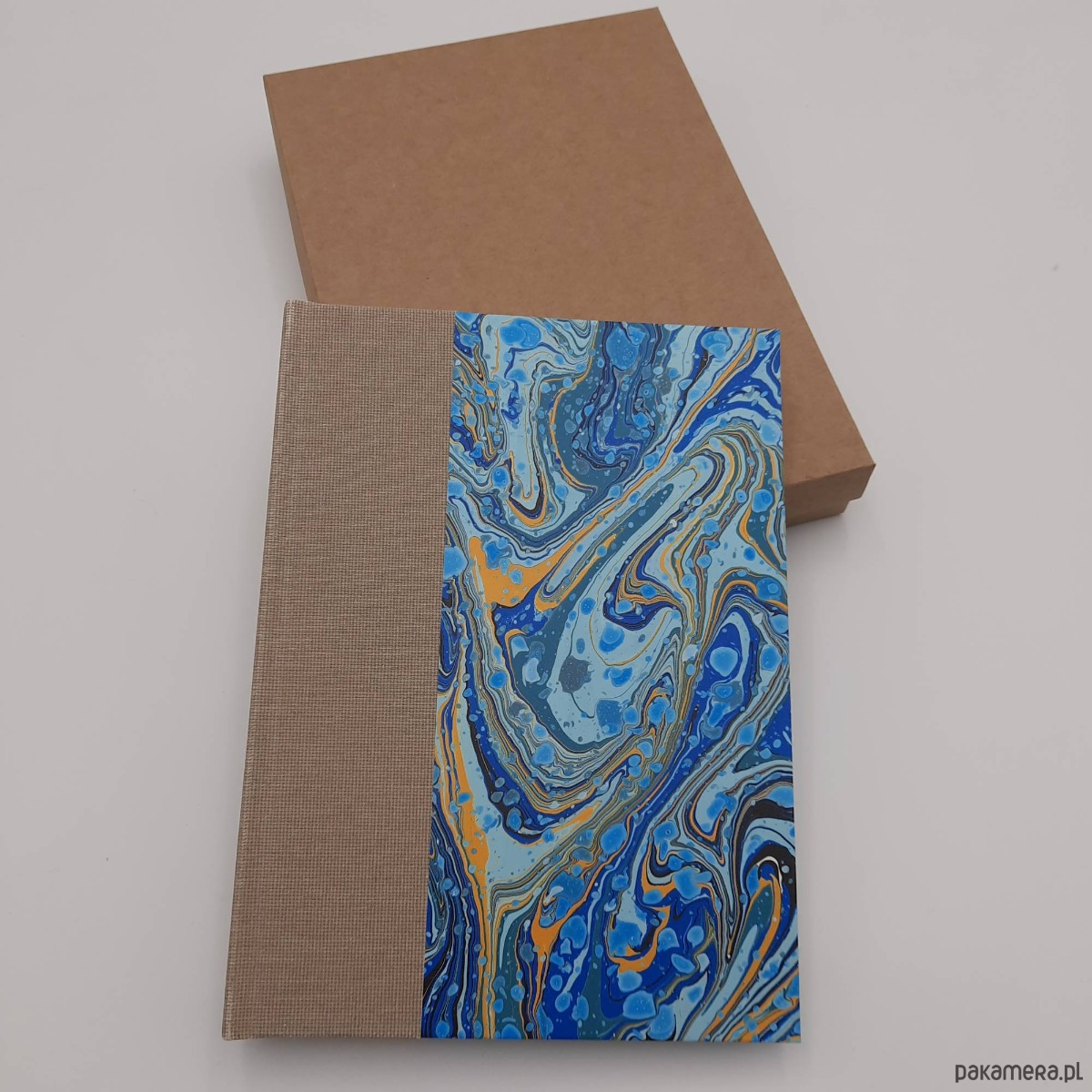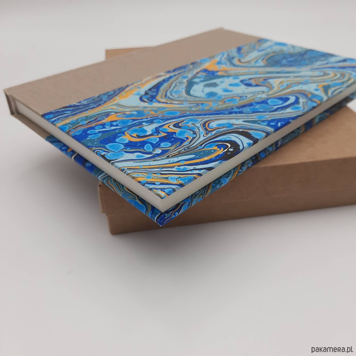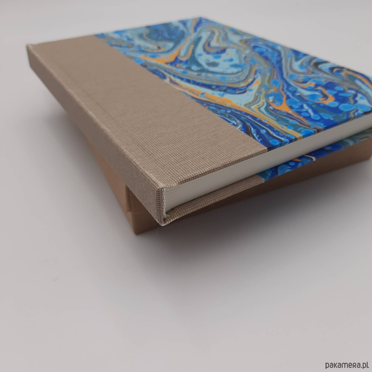Notes, szkicownik, ręcznie wykonany, w twardej oprawie oklejonej płótnem oraz papierem barwionym w technice marmoryzacji, który maluję w mojej pracowni.