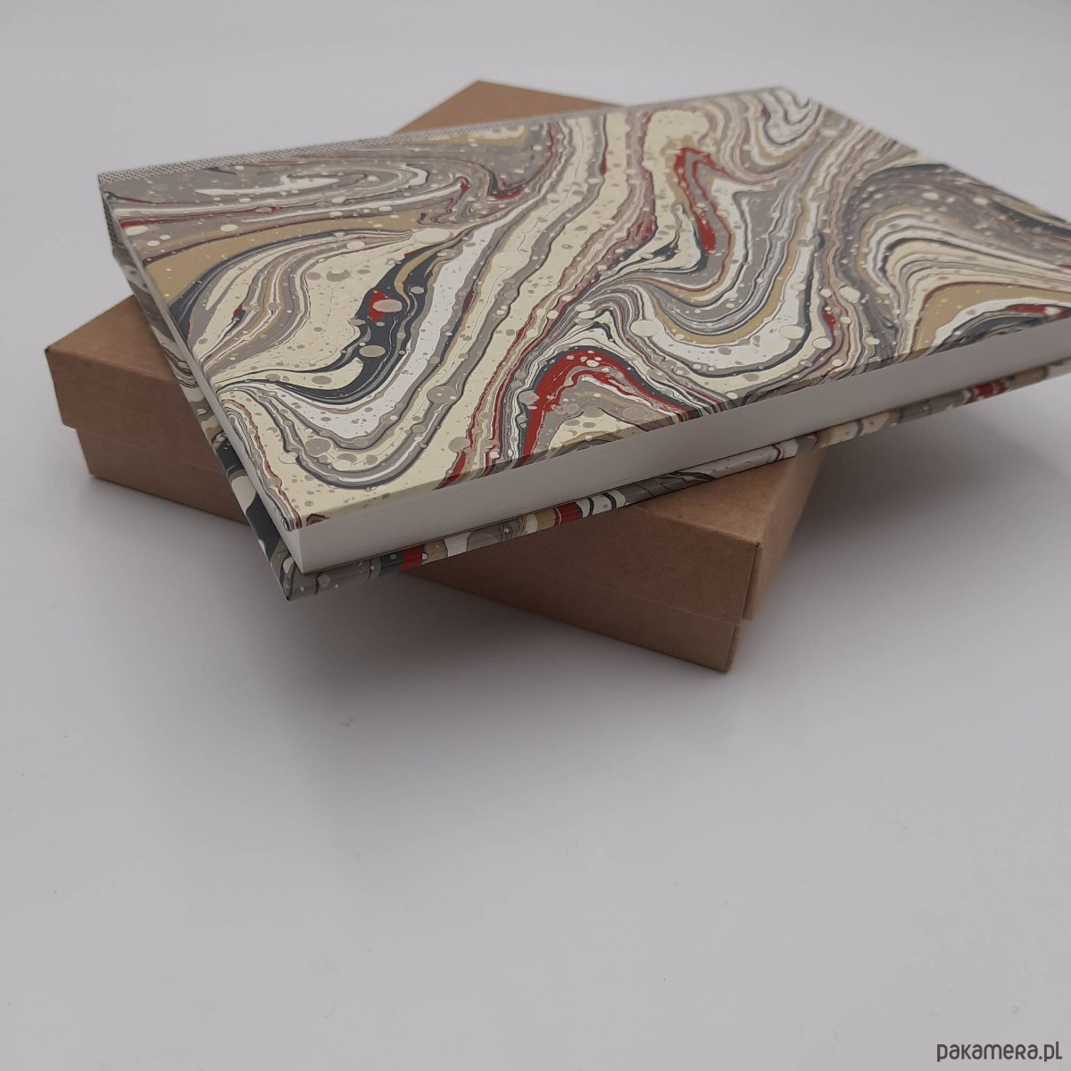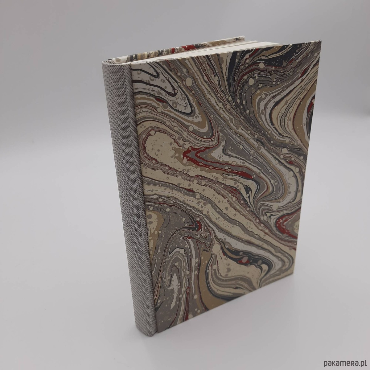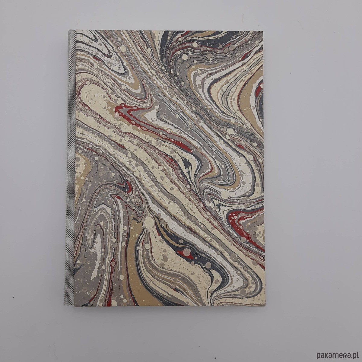 Notes, szkicownik, ręcznie wykonany, w twardej oprawie oklejonej płótnem oraz papierem barwionym w technice marmoryzacji, który maluję w mojej pracowni.