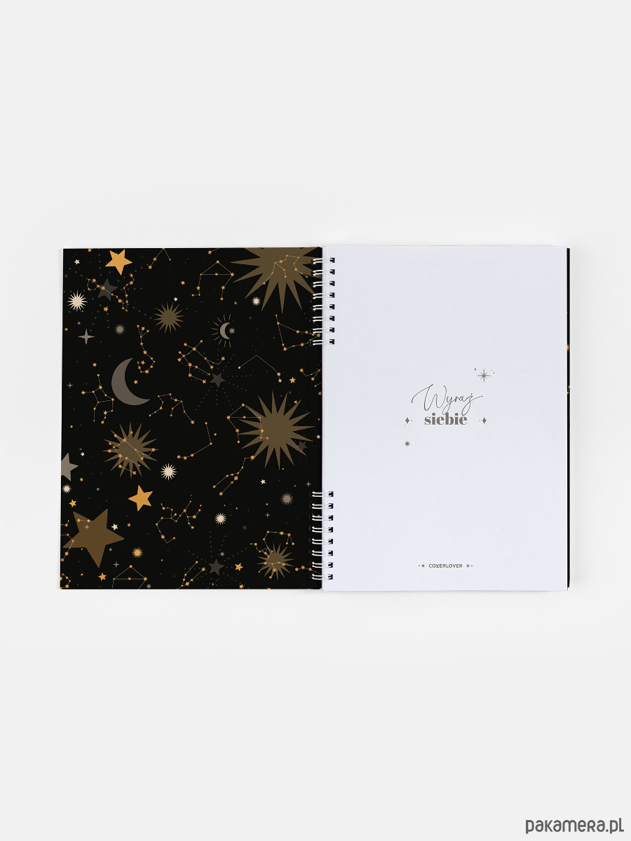 Dzięki ukrytej wewnątrz spirali, notes rozkłada się na płasko. Każda ze stron posiada także perforację ułatwiającą dokładne odrywanie kartek, a z tyłu notesu znajdziesz specjalną kieszonkę, która pomieści wszelkie luźne zapiski, rachunki, czy na przykład ulubione instaxy. :)