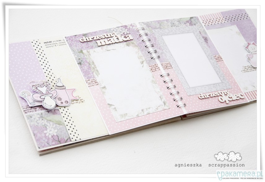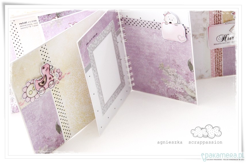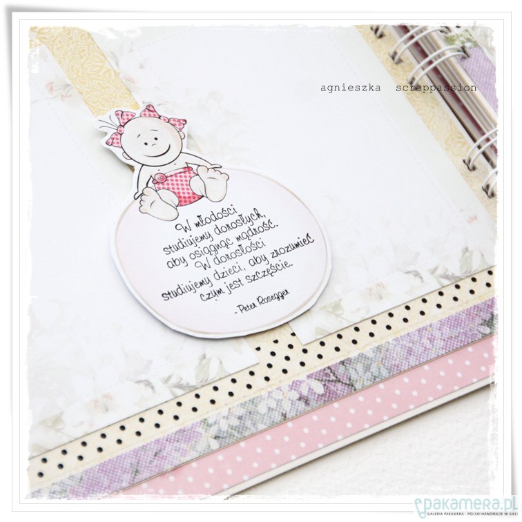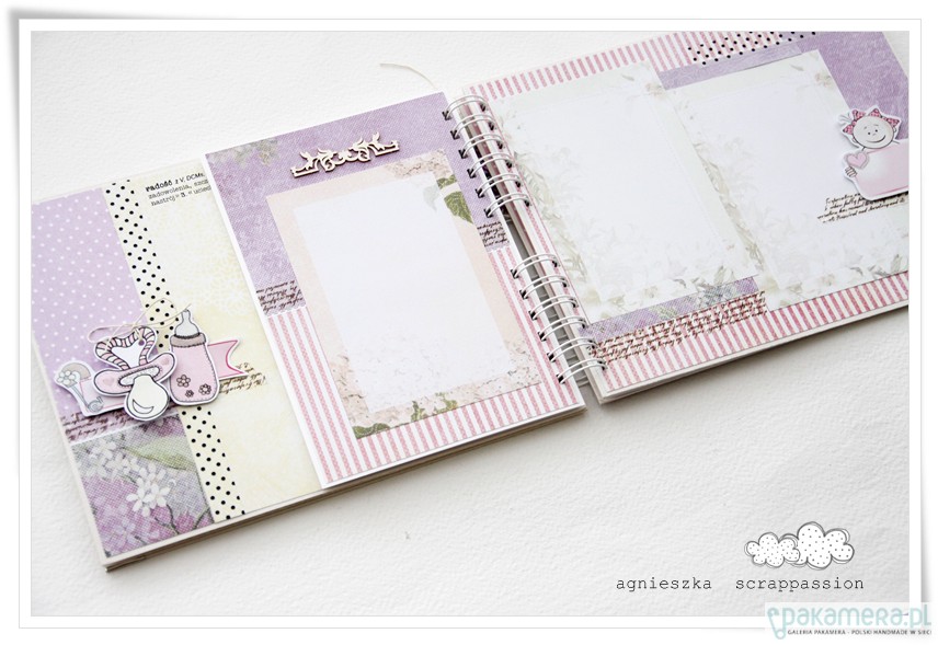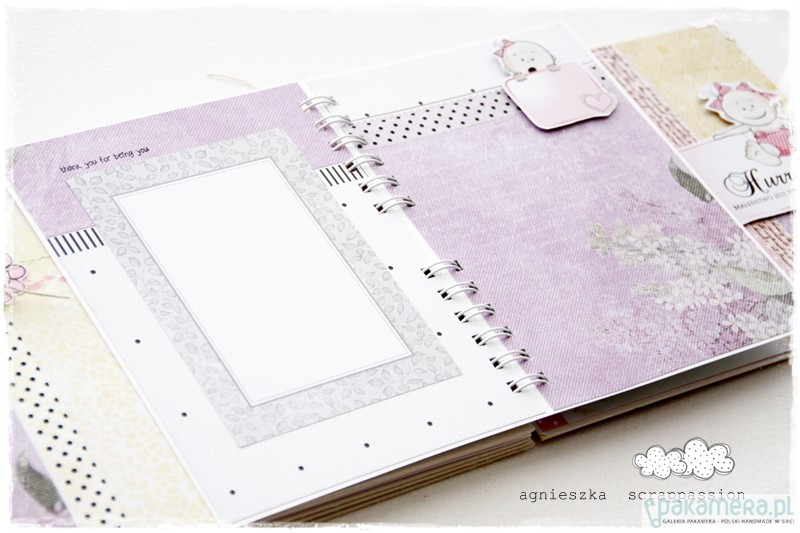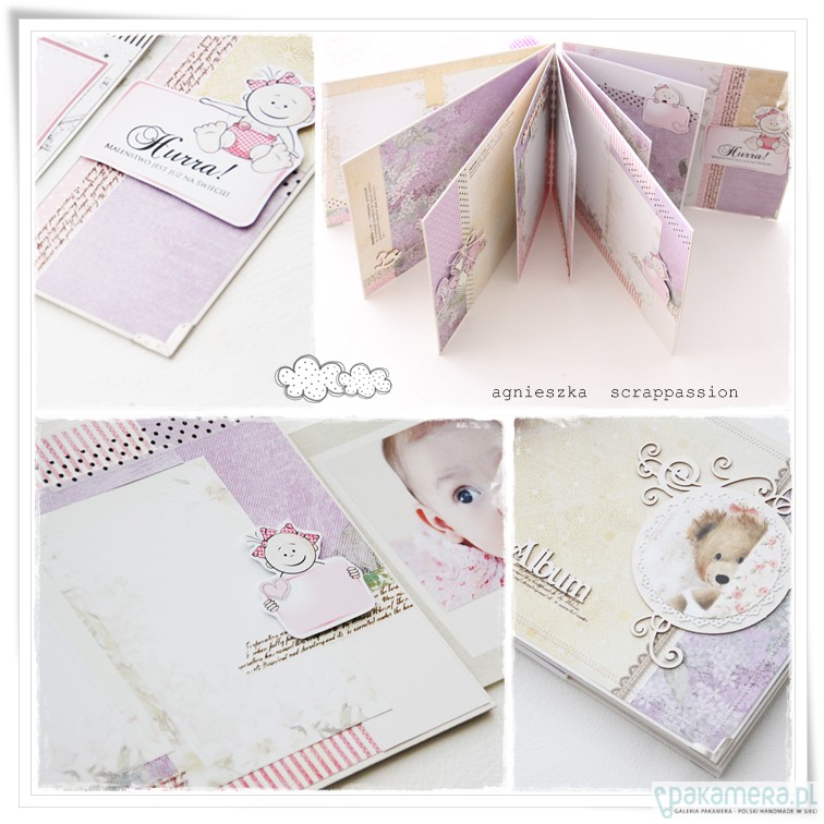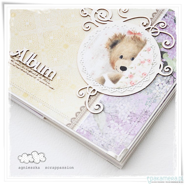 Oryginalny, ręcznie wykonany album w formacie 20/25 cm. , 9 kart (w tym 5 pełnowymiarowych i 4 karty mniejsze) łączy solidna sprężyna. Rogi okładek zabezpieczone metalowymi narożnikami Uroku dodają piękne papiery, dekoracyjna tasma, liczne przeszycia, oraz ciepłe pastelowe kolory. Album stanowić może wyjątkową pamiątkę z okazji narodzin, chrztu.... czy innych ważnych uroczystości z życia dziecka polecam :)