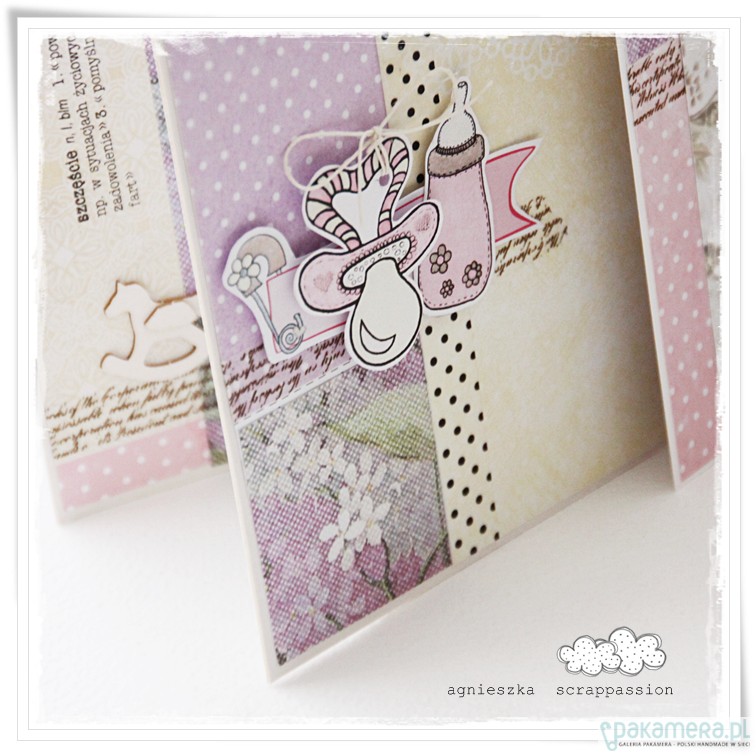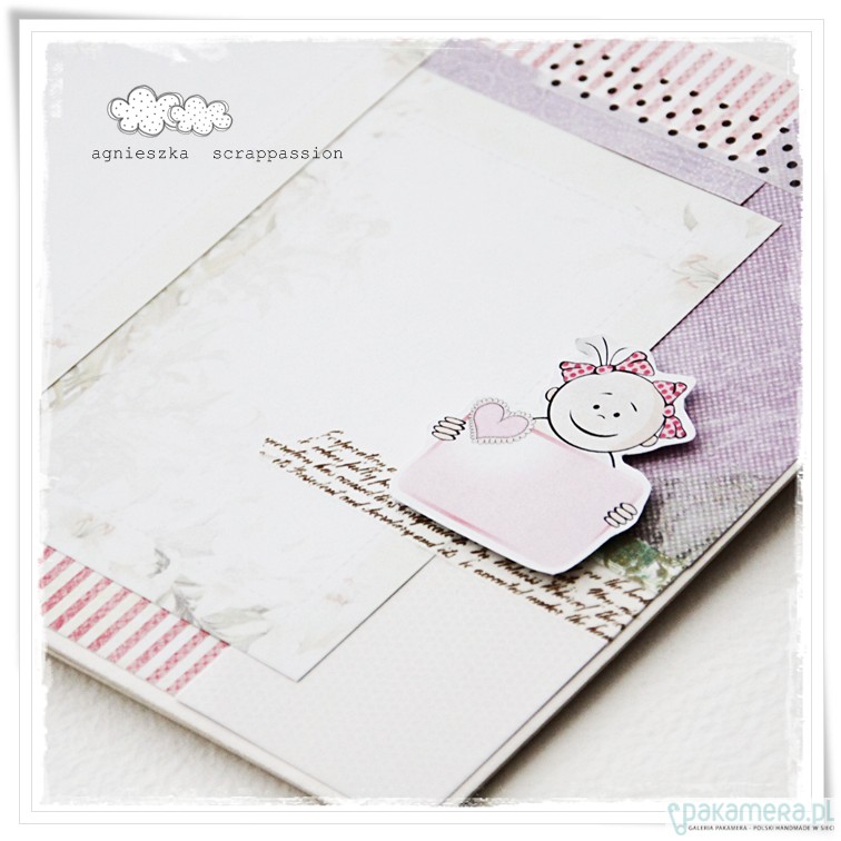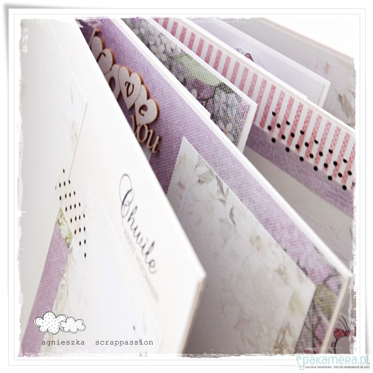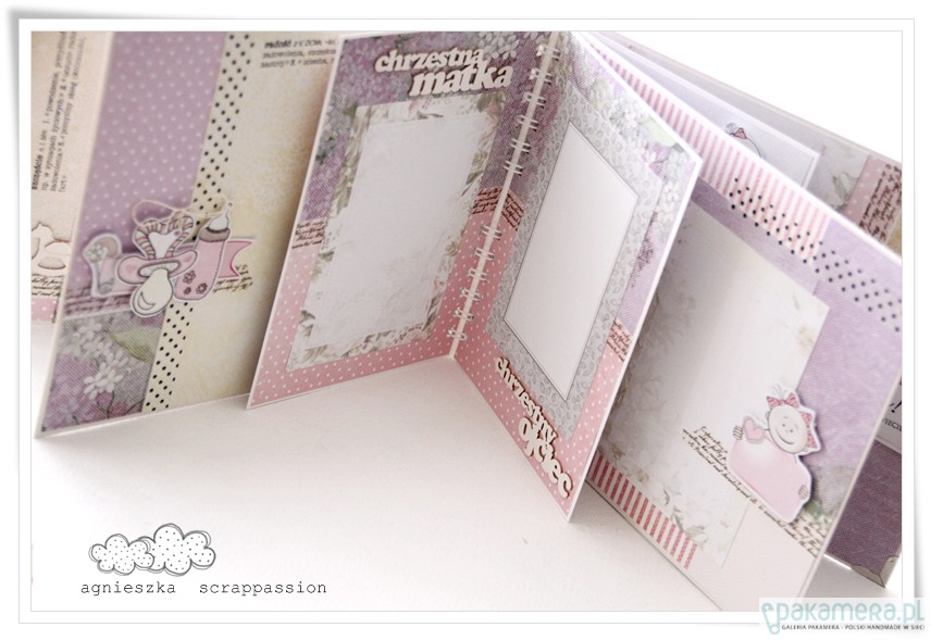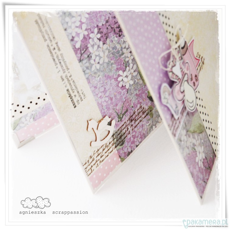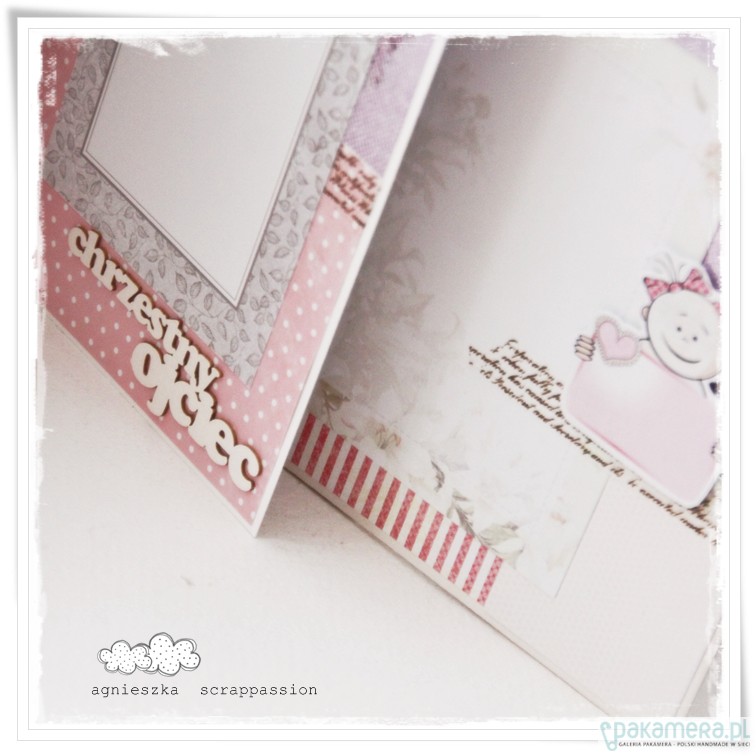 Oryginalny, ręcznie wykonany album w formacie 20/25 cm. , 9 kart (w tym 5 pełnowymiarowych i 4 karty mniejsze) łączy solidna sprężyna. Rogi okładek zabezpieczone metalowymi narożnikami Uroku dodają piękne papiery, dekoracyjna tasma, liczne przeszycia, oraz ciepłe pastelowe kolory. Album stanowić może wyjątkową pamiątkę z okazji narodzin, chrztu.... czy innych ważnych uroczystości z życia dziecka polecam :)