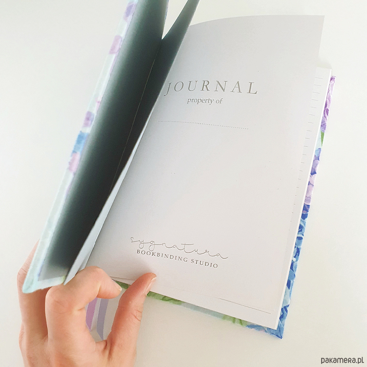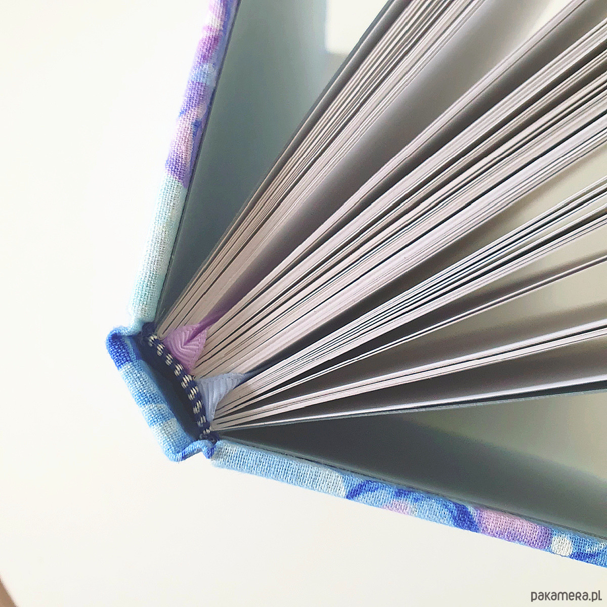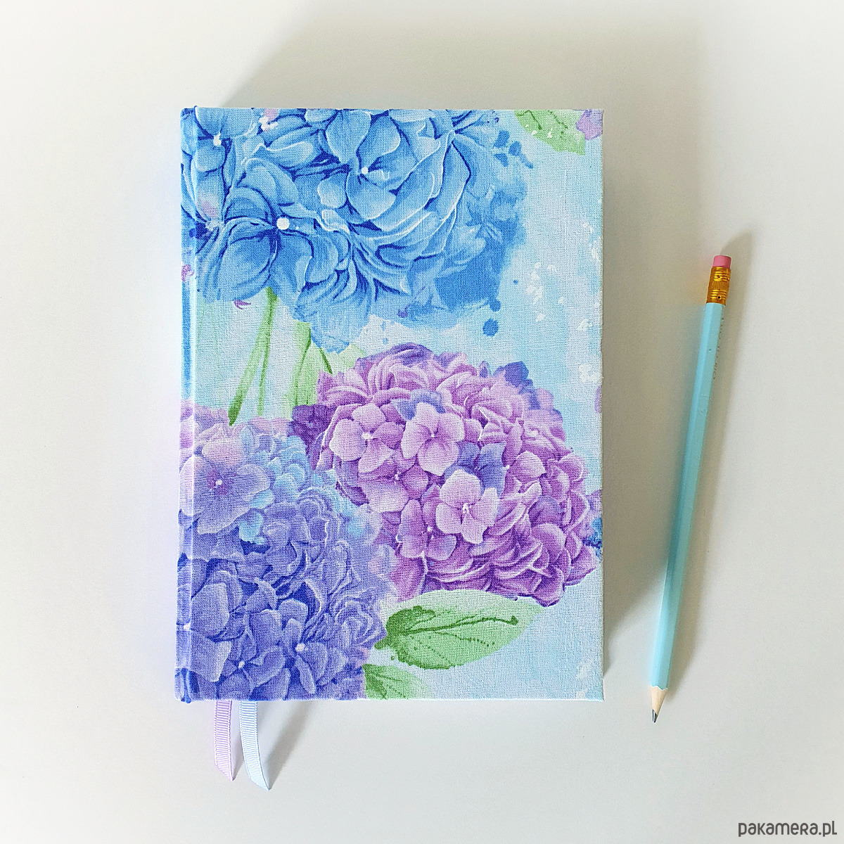 Piękny, kwiatowy notes w linie. Wykonany w 100% ręcznie, od drukowania stron poprzez szycie, klejenie okładek i składanie. Twarda okładka oklejona jest tkaniną bawełnianą, przyjemnie gładka i miła w dotyku. Wyklejki na początku i końcu książki wykonane są z grubego papieru w stalowo-szarym kolorze. Notes posiada dwie wstążkowe zakładki, i kartę tytułową z miejscem na własnoręczny podpis.