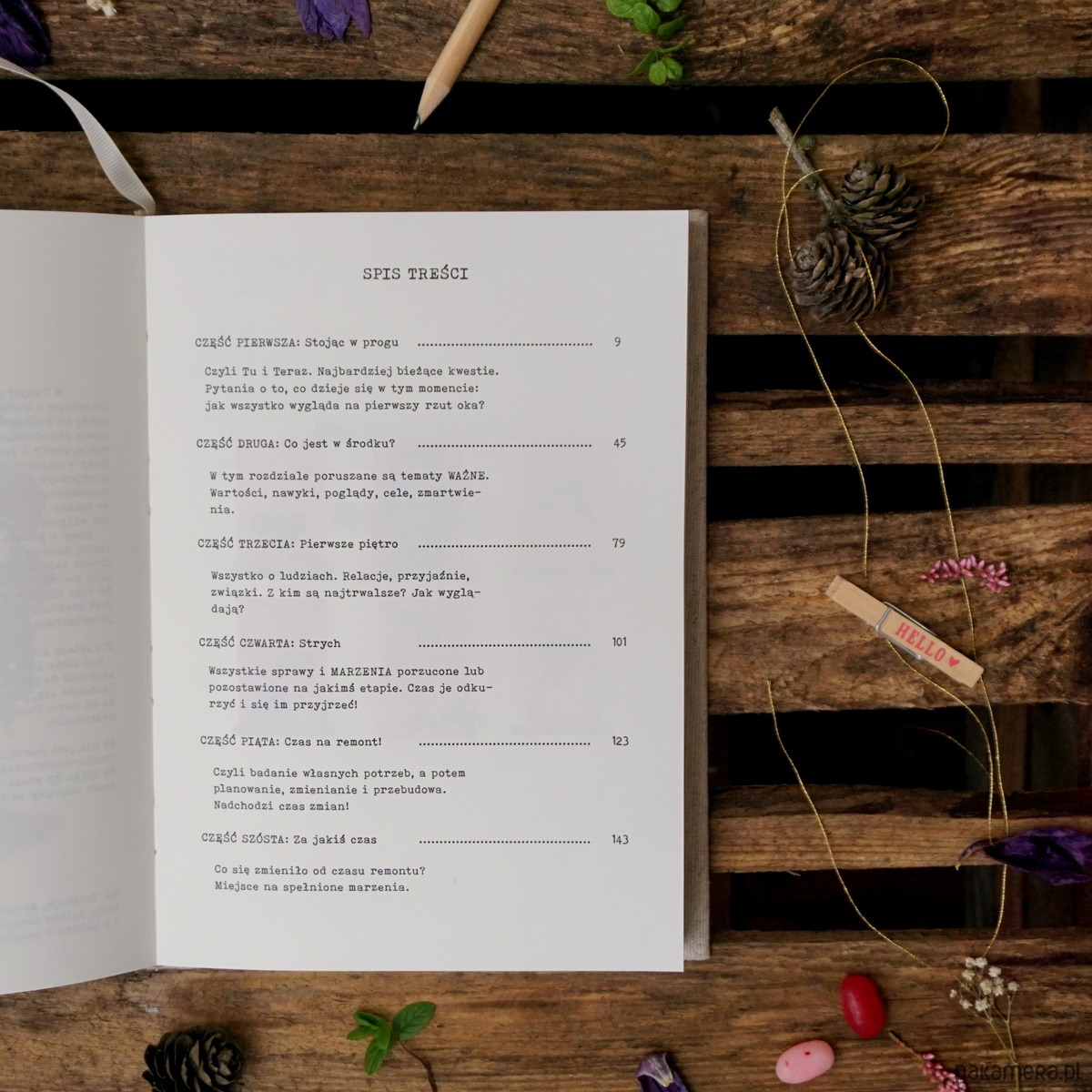 "W Twojej głowie znajdują się rozmaite pokoje. Od salonu z kuchnią, najczęściej odwiedzanego przez gości, przez Twój pokój do którego wpuszczasz jedynie bliskie osoby, aż po strych, gdzie nawet samodzielnie się rzadko zapuszczasz. Wszędzie stoją rozmaite meble, szafy i komody, pełne szuflad i zakamarków. Całość tworzy dom. Domy w naszych głowach są bardzo różne. Potrafią emanować ciepłem, przyjemnym dla oka stylem, być sterylnie czyste, albo wręcz nieprawdopodobnie zagracone. Inne mają labiryntową konstrukcję, lub betonowe ściany. Są domy w których tynk sypie się ze ścian, a sufit podchodzi wilgocią.