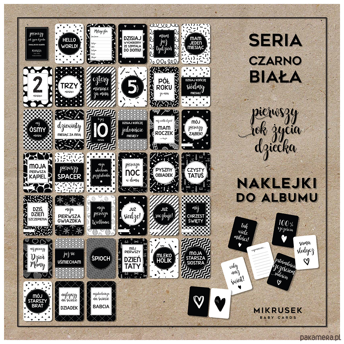 czarno-białe | 37 dużych naklejek + naklejki dodatkowe z grafiką, napisami oraz możliwością wpisania wspomnień