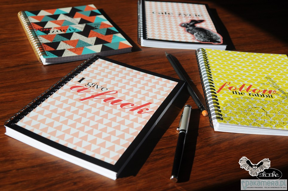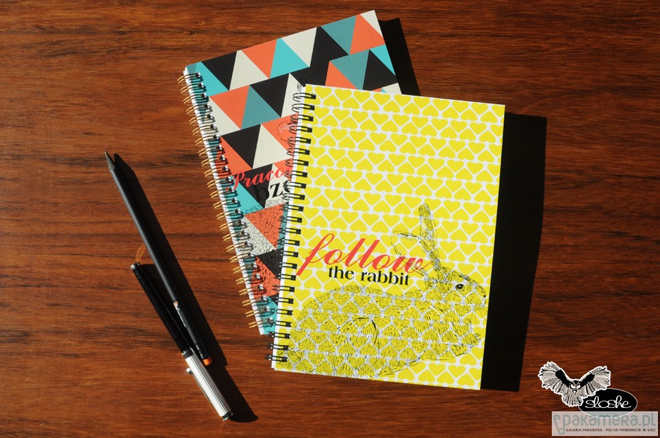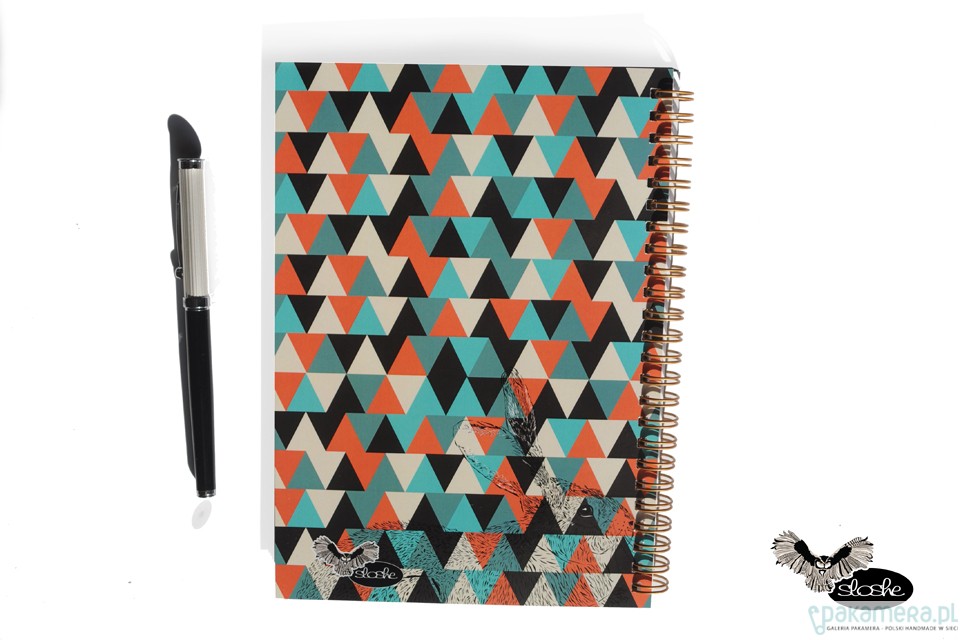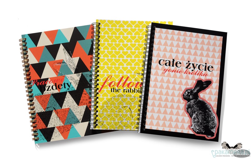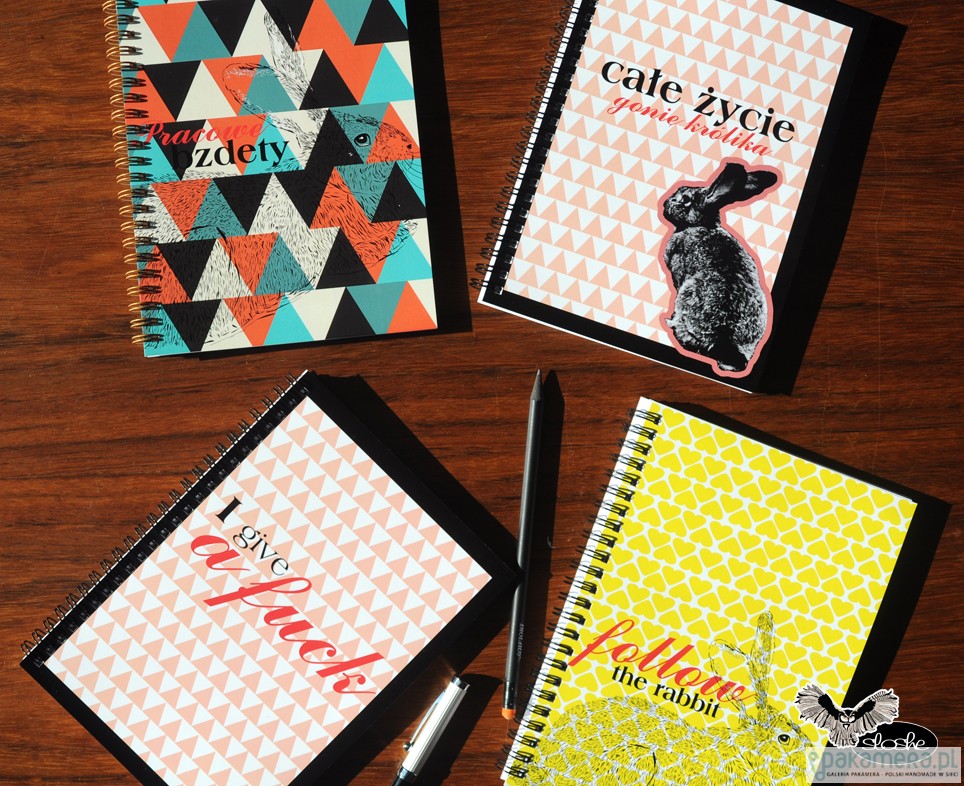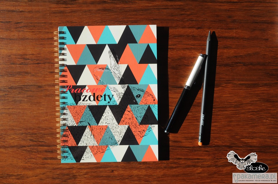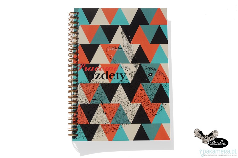 Notatnik w geometryczne kolorowe trójkąty z ilustracją królika i napisem Pracowe bzdety. Notatnik jest wykonany ręcznie, w formacie A5, idealny do torebki, zawiera 80 kartek/160 stron z wysokiej jakości 80gr białego papieru (możliwa kratka lub linia, na zamówienie, dopłata 2pln), opakowany w celofanową folię. Wielkość 15cm x 21cm ( dostępny również w formacie A6). Zapraszamy do naszego działu Notatników A6 i A5, znajdą tam Państwo więcej pięknych wzorów