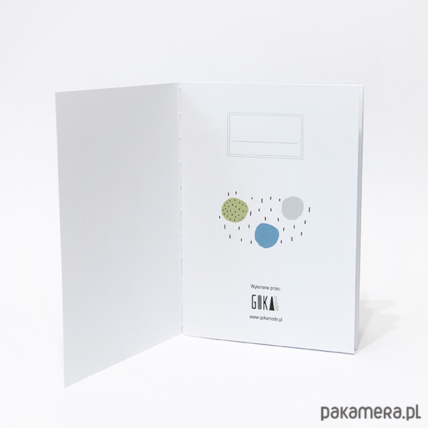 Wewnątrz okładki znajduje się sztywniejsza strona tytułowa z nadrukiem i miejscem do samodzielnego podpisania zeszytu.