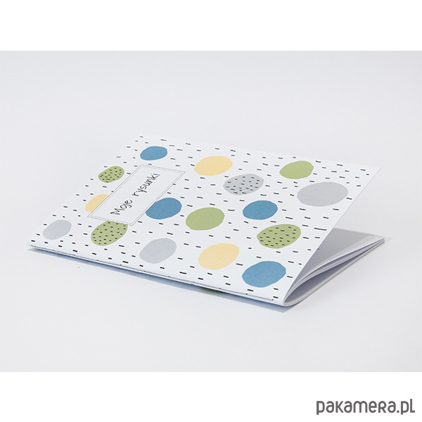 W środku 24 kartki, czyli 48 stron na zapiski/rysunki (papier offset 80g).