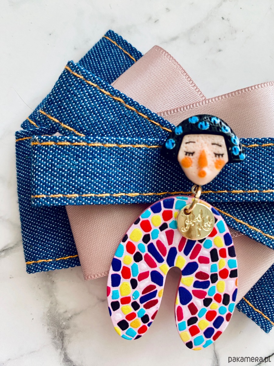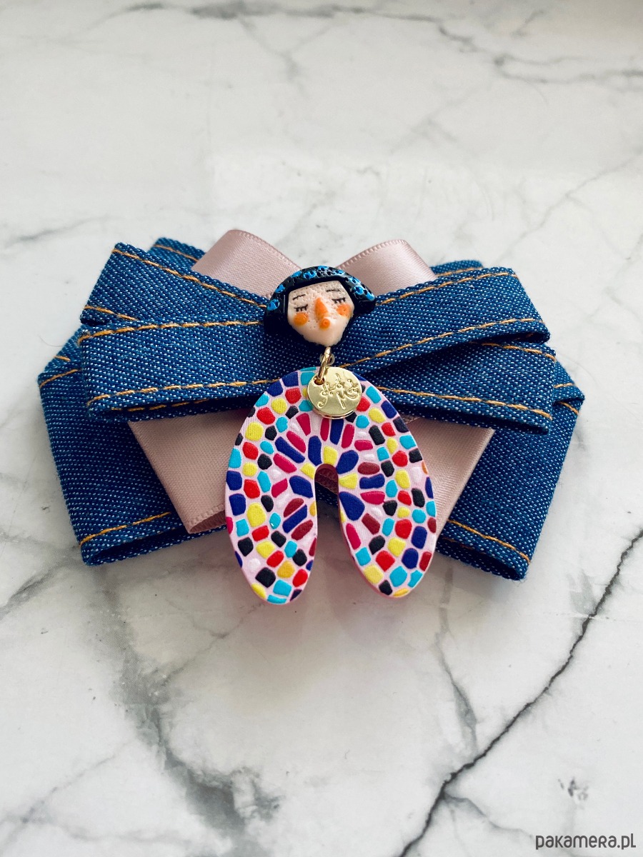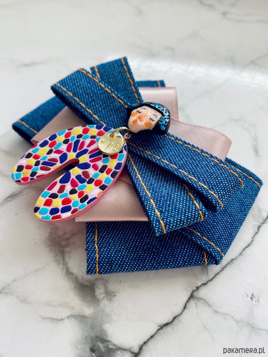 Broszka wykonana z wysokiej jakości taśm i dodatków.