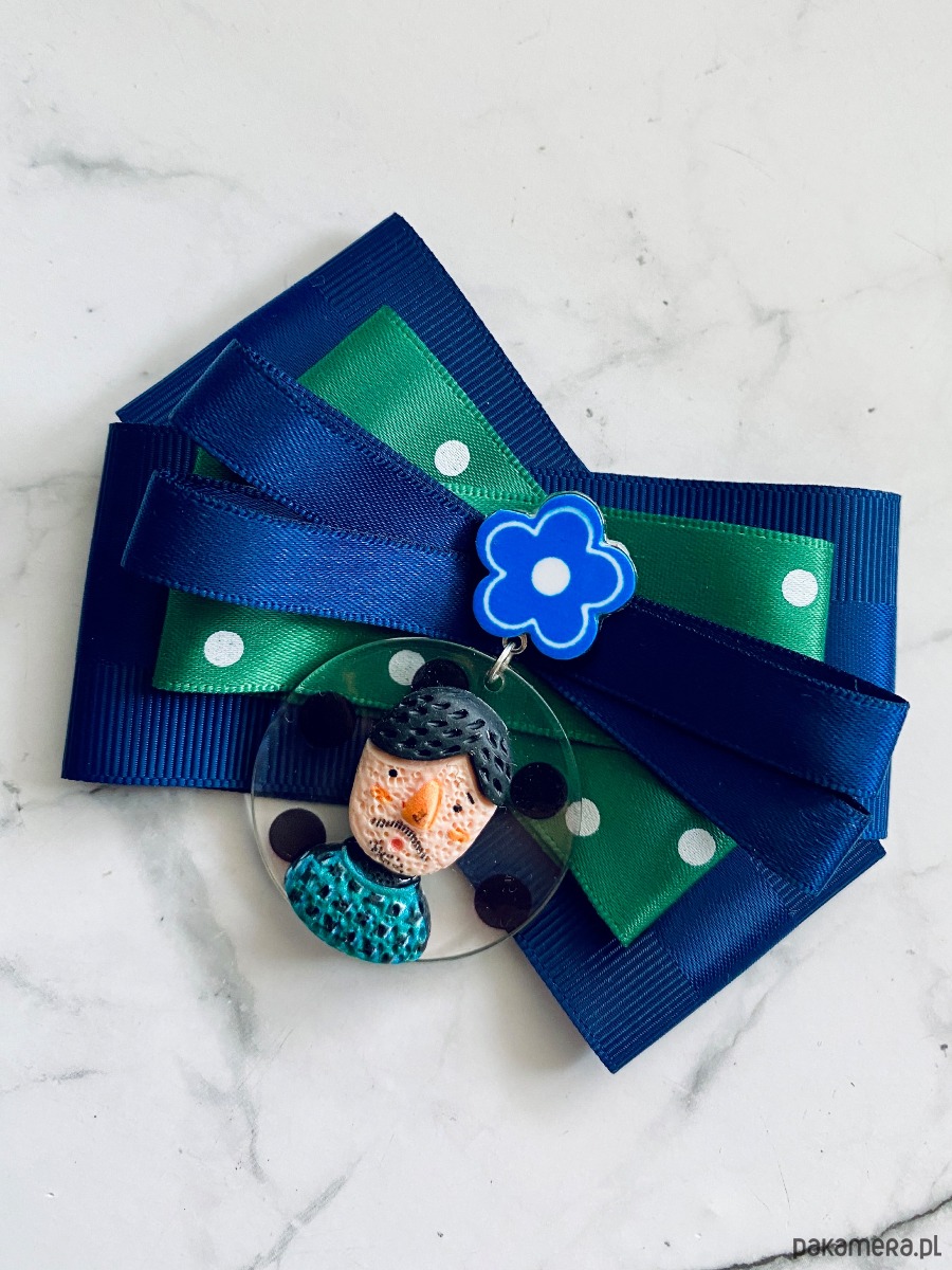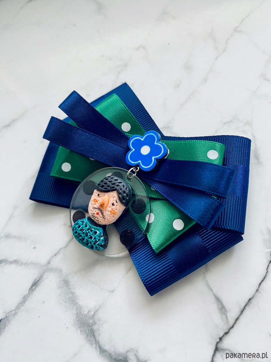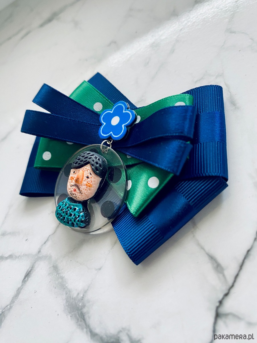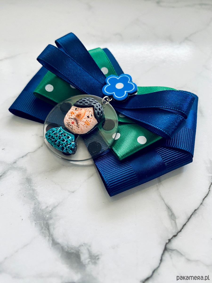 Broszka wykonana z wysokiej jakości taśm i dodatków.