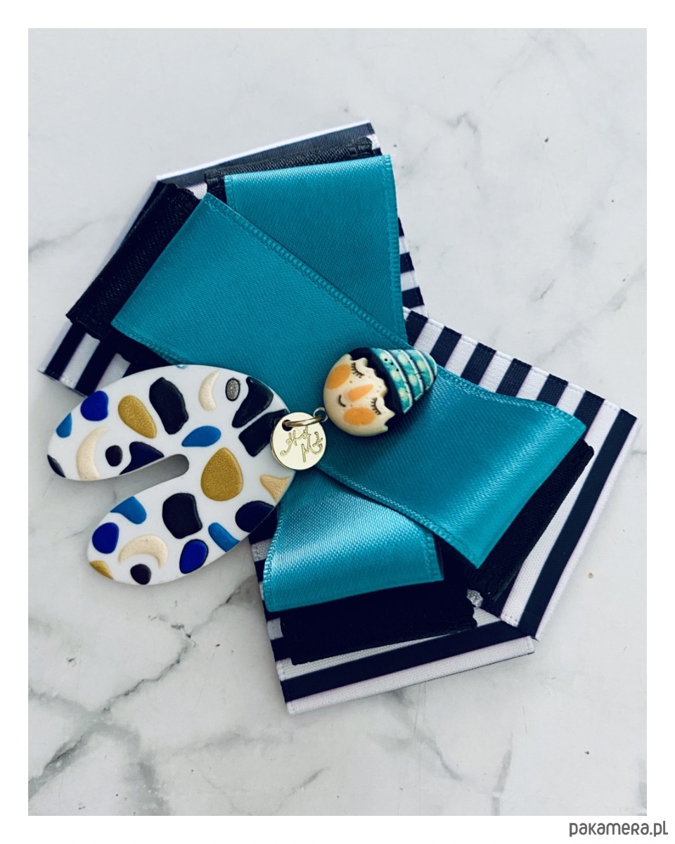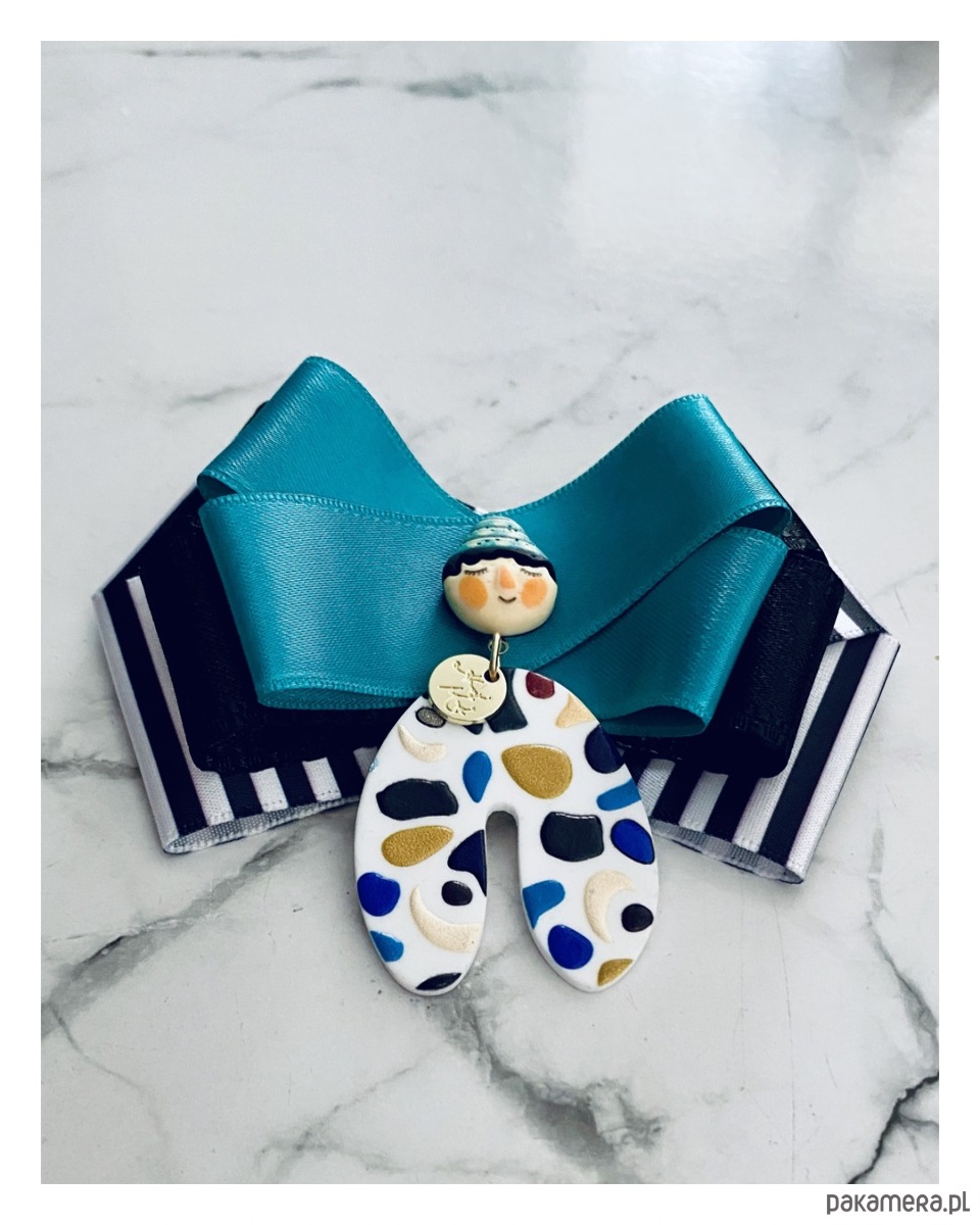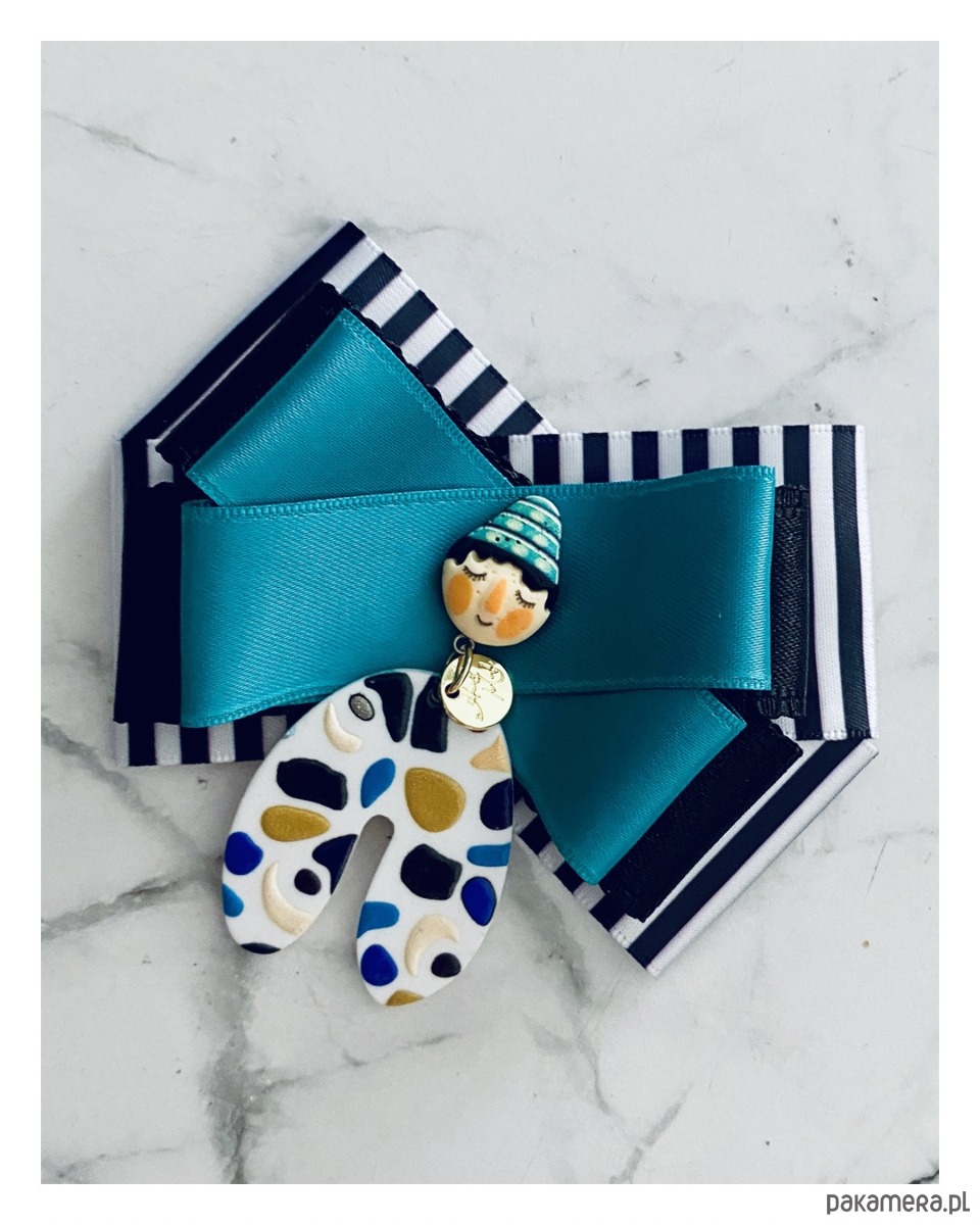 Broszka wykonana z wysokiej jakości taśm i dodatków.