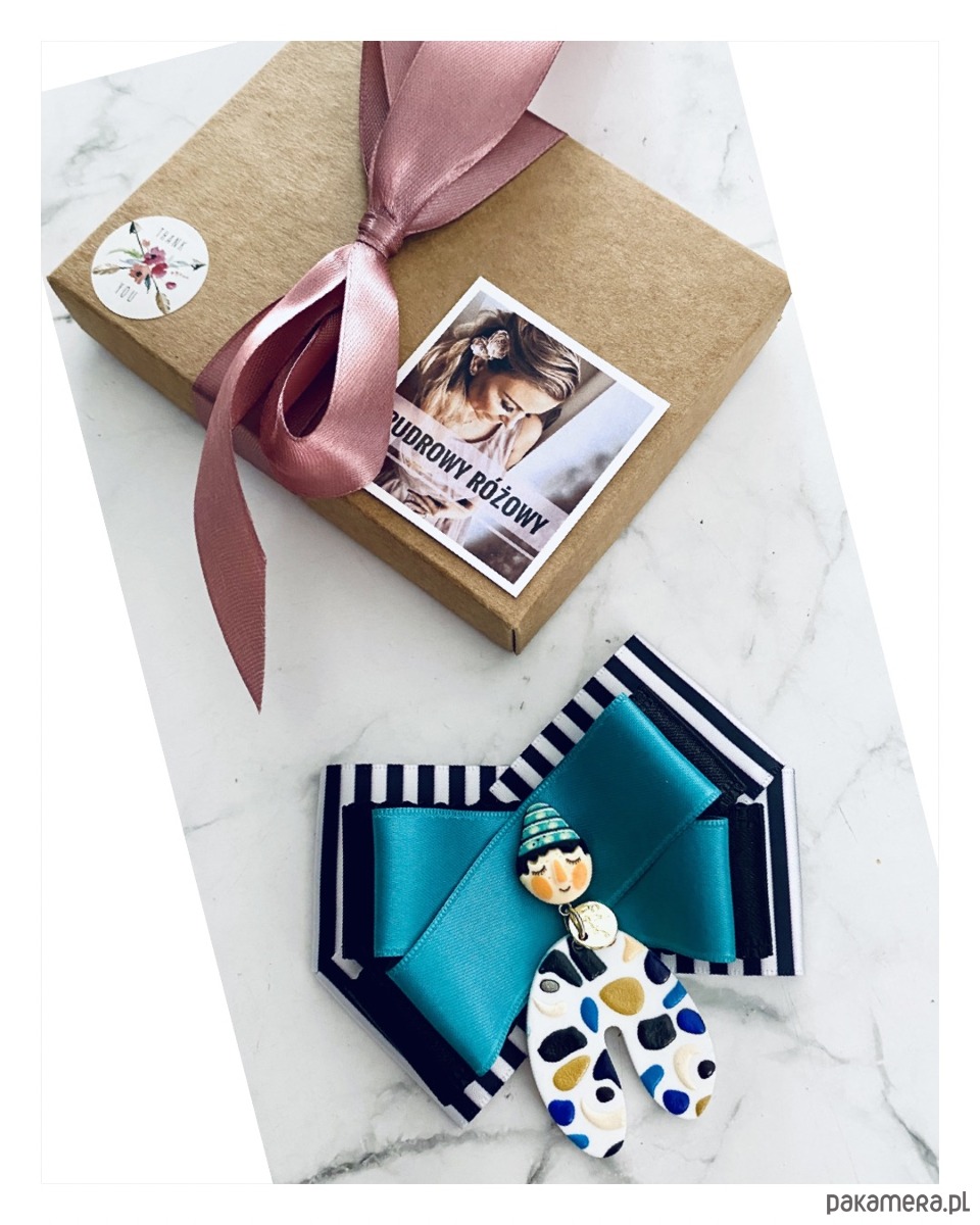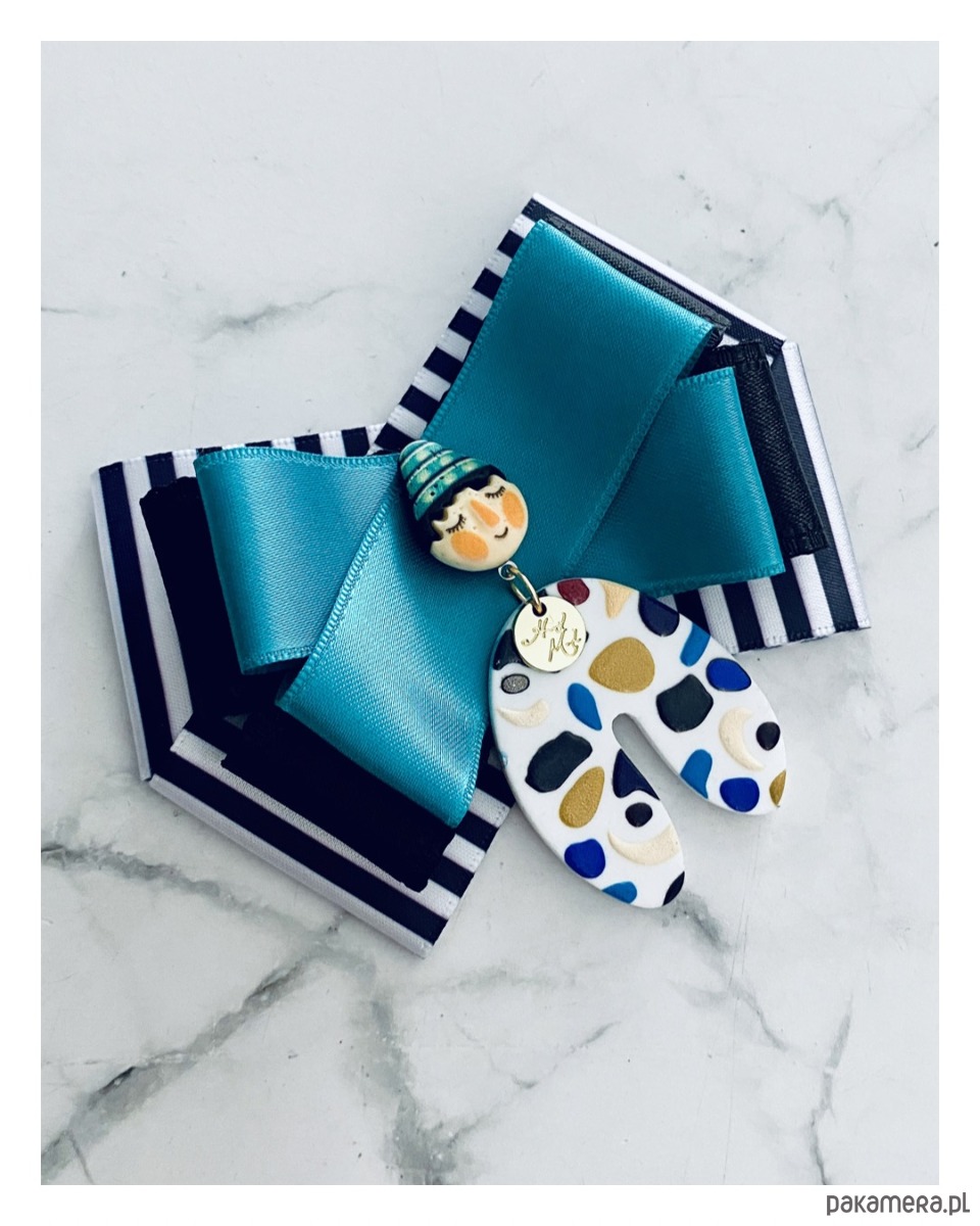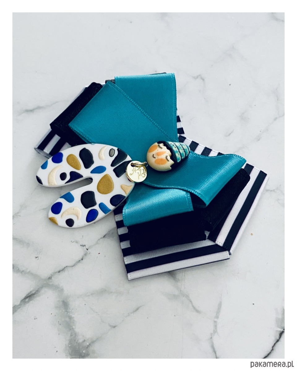 Broszka wykonana z wysokiej jakości taśm i dodatków.
