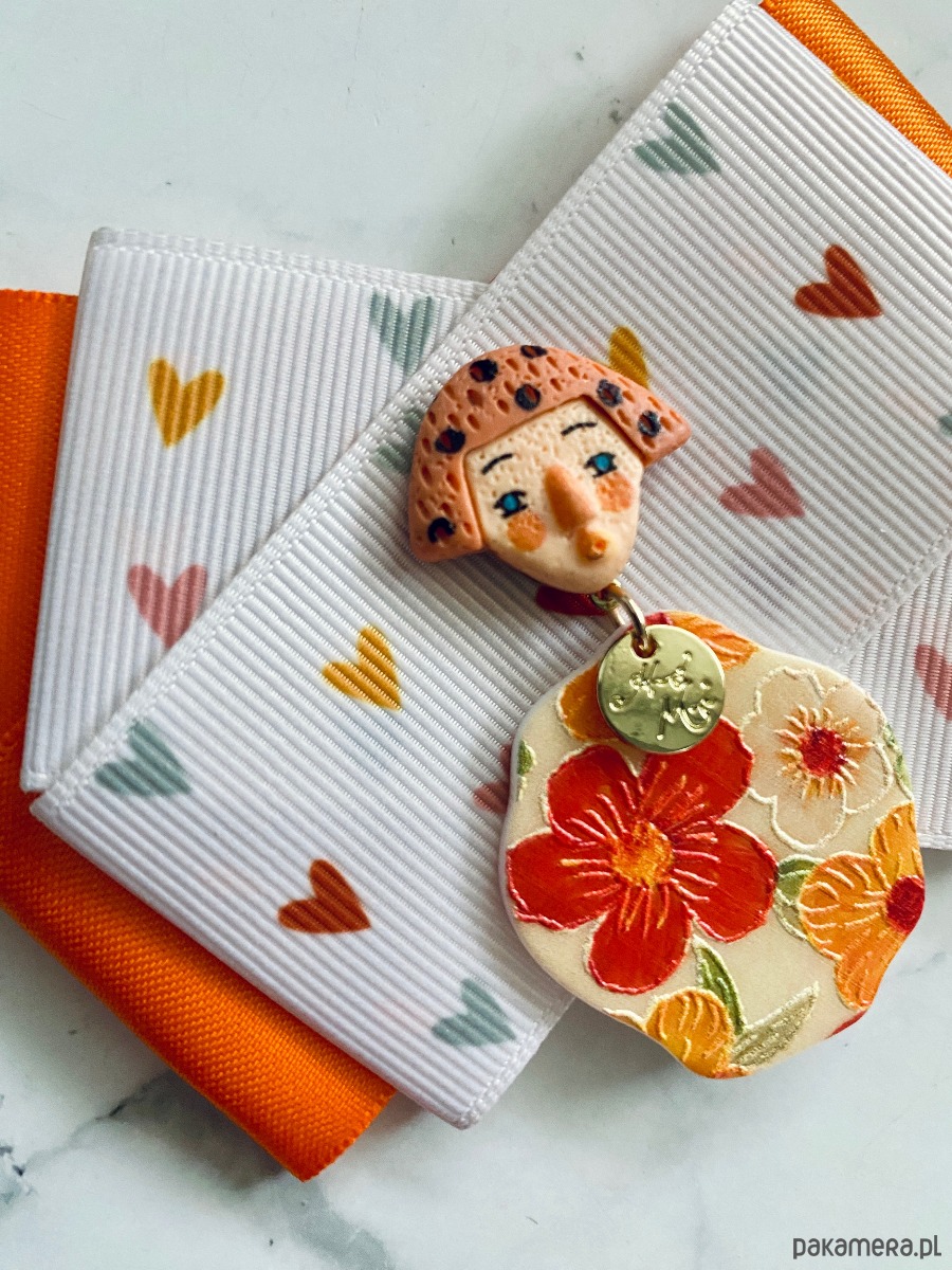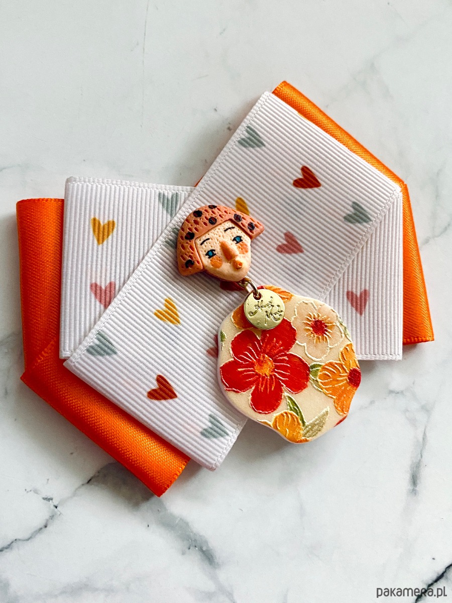 Broszka wykonana z wysokiej jakości taśm i dodatków.