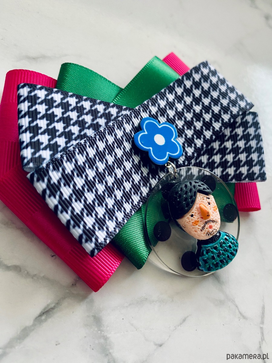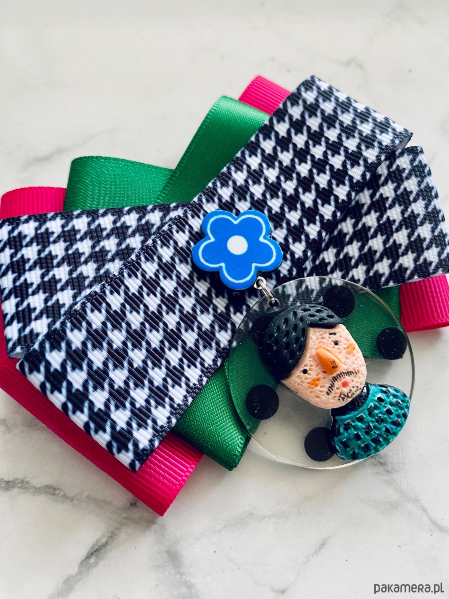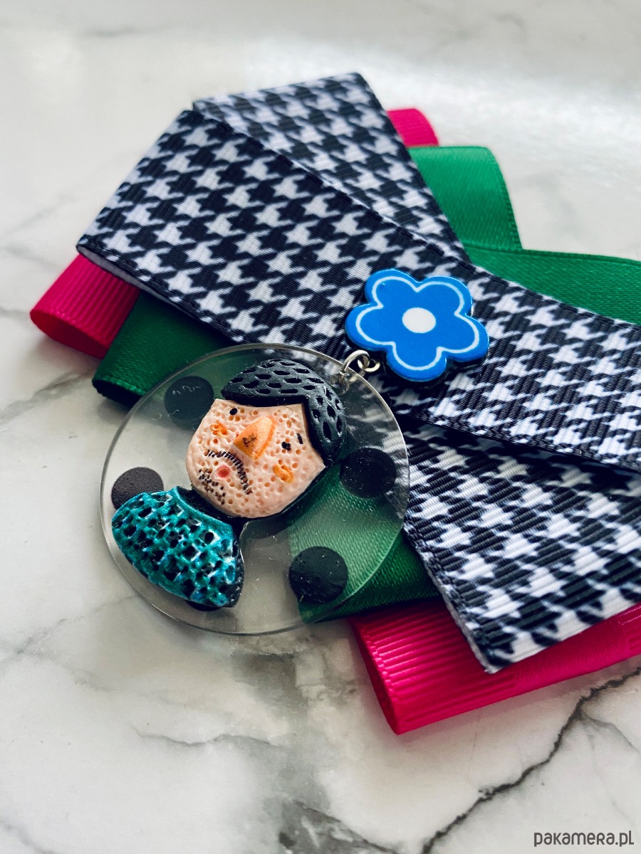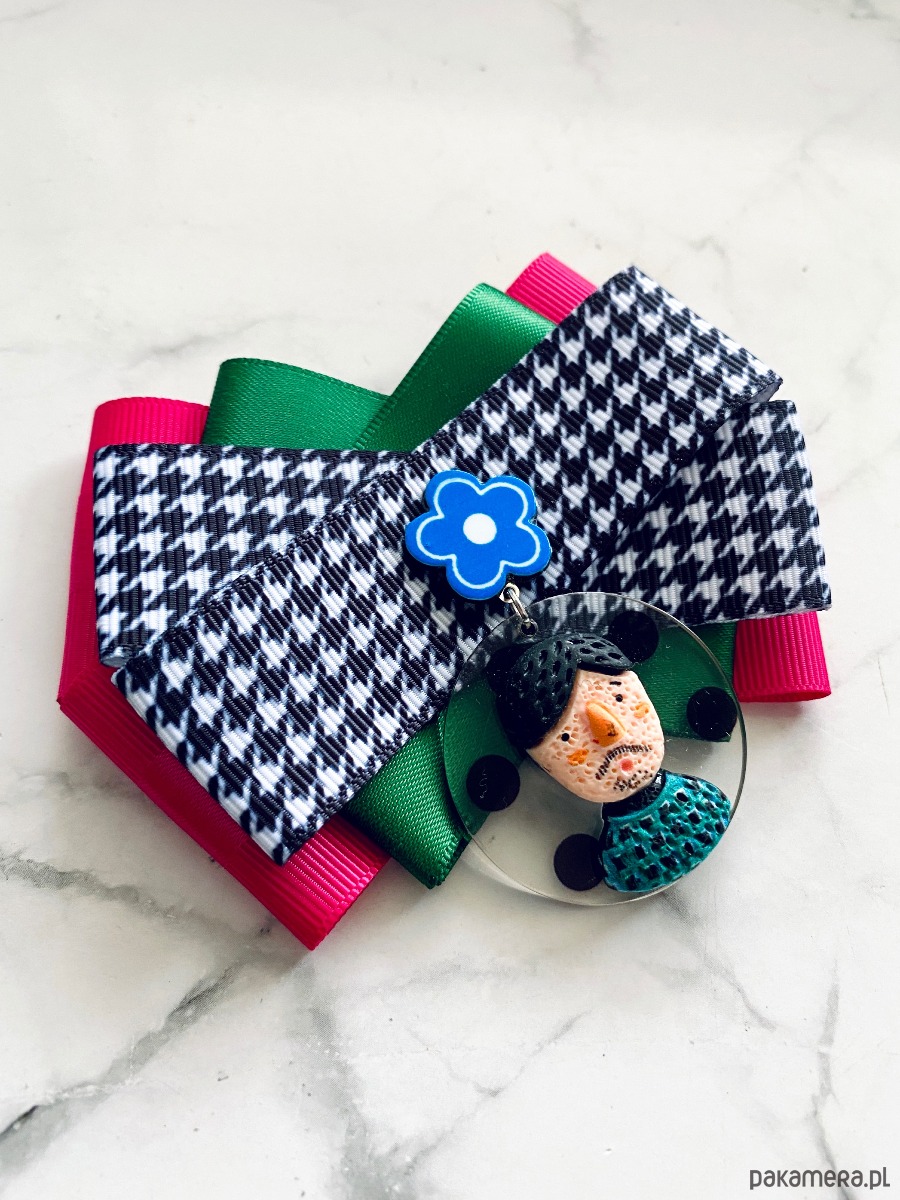 Broszka wykonana z wysokiej jakości taśm i dodatków.