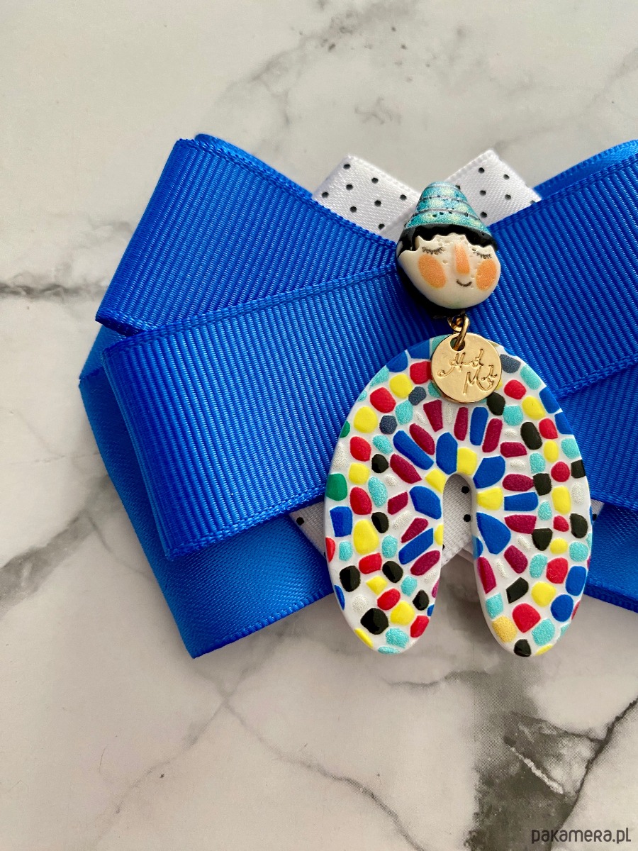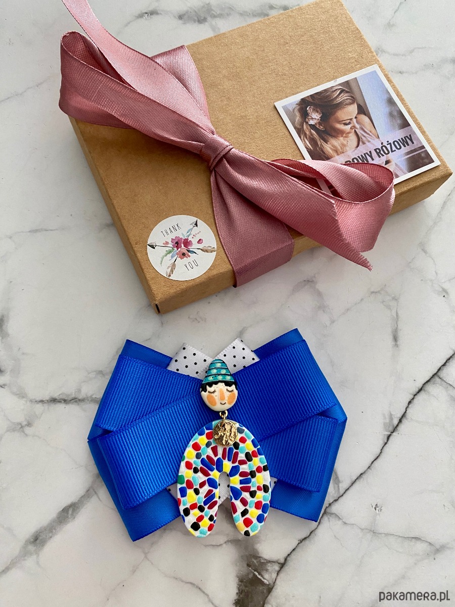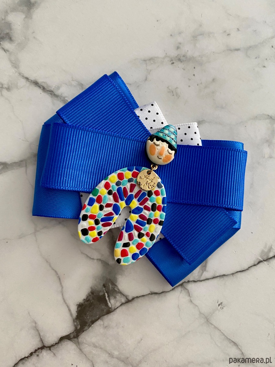 Broszka wykonana z wysokiej jakości taśm i dodatków.