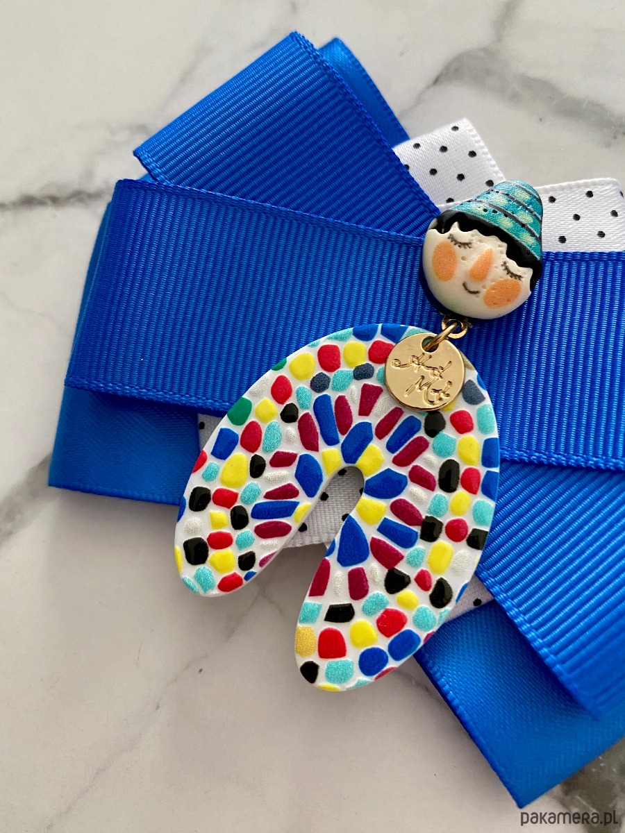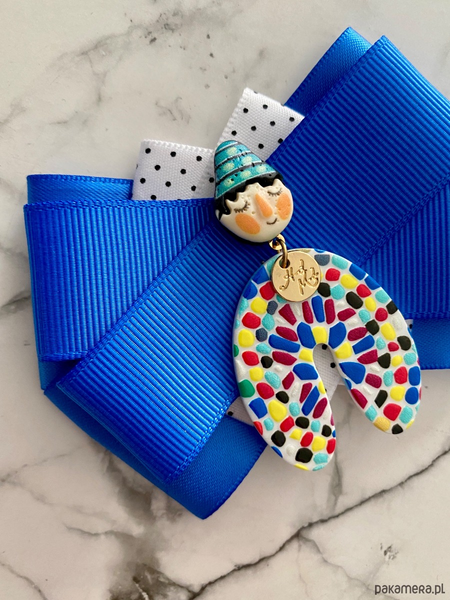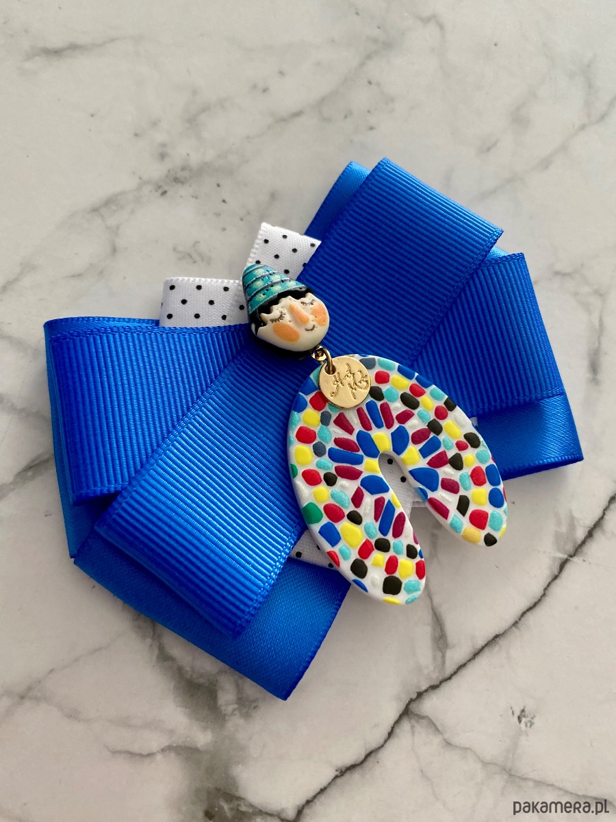 Broszka wykonana z wysokiej jakości taśm i dodatków.