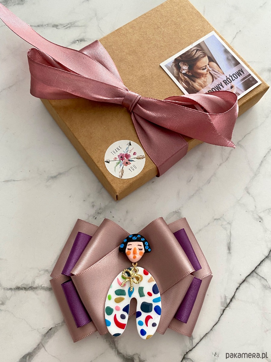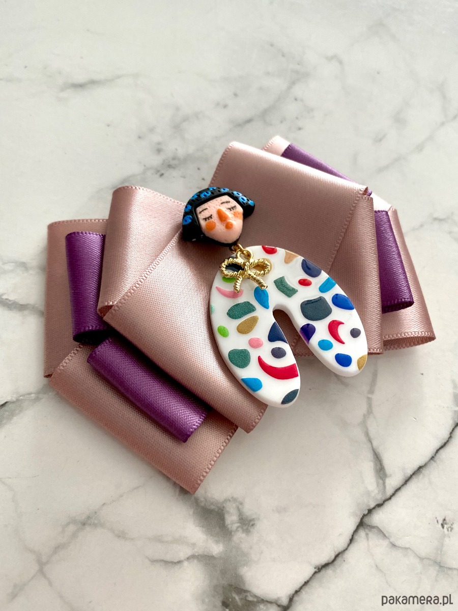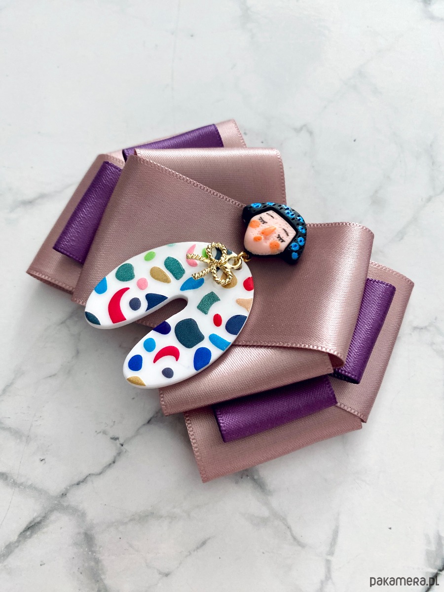 Broszka wykonana z wysokiej jakości taśm i dodatków.