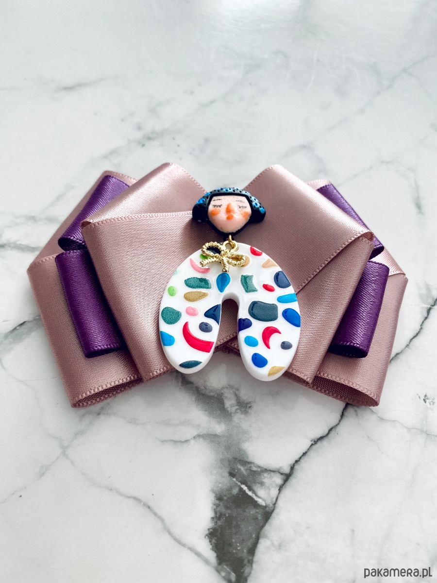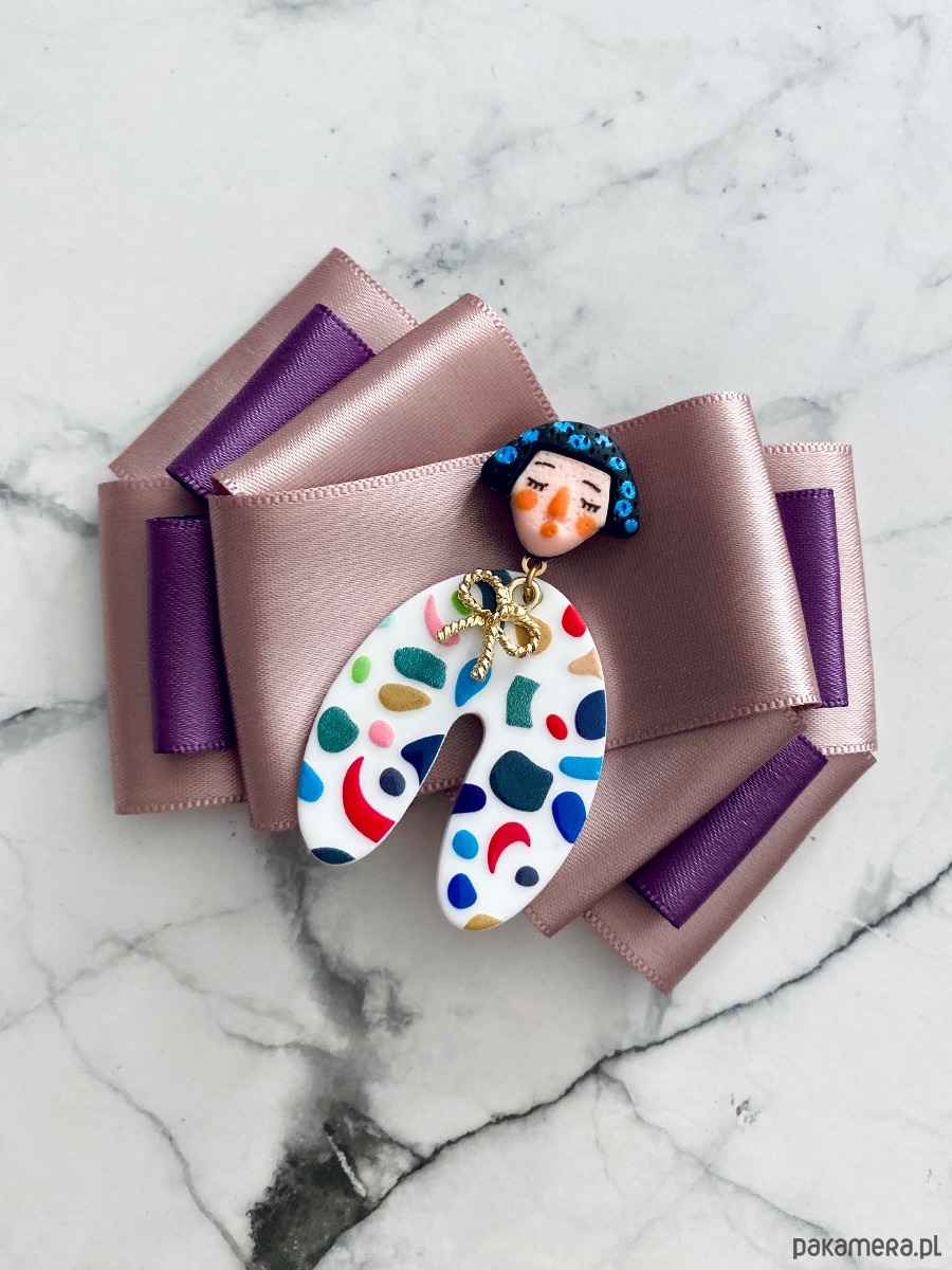 Broszka wykonana z wysokiej jakości taśm i dodatków.