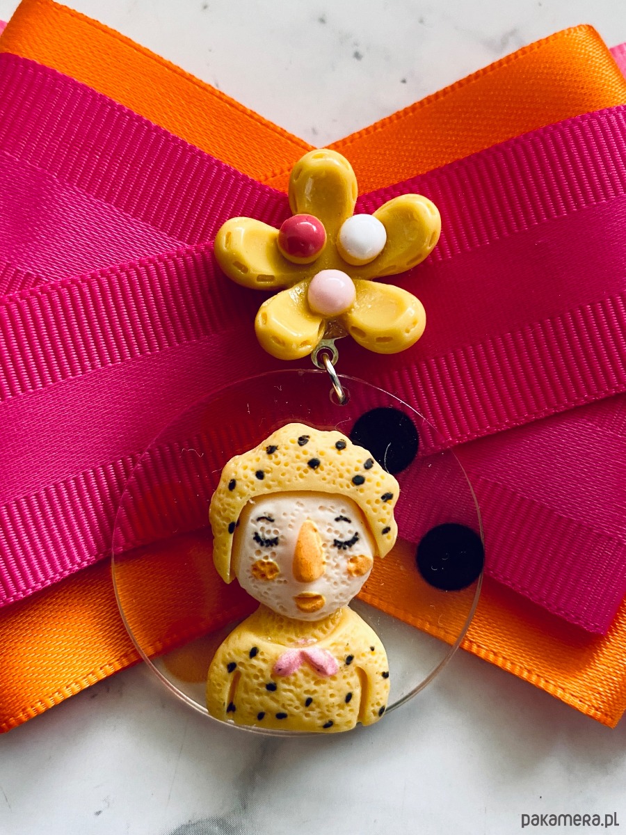 Broszka wykonana z wysokiej jakości taśm i dodatków.