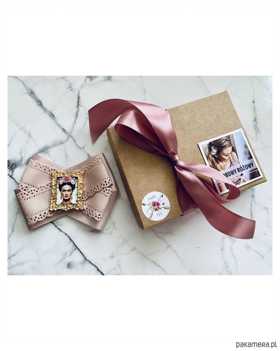 Broszka wykonana z wysokiej jakości taśm i dodatków.