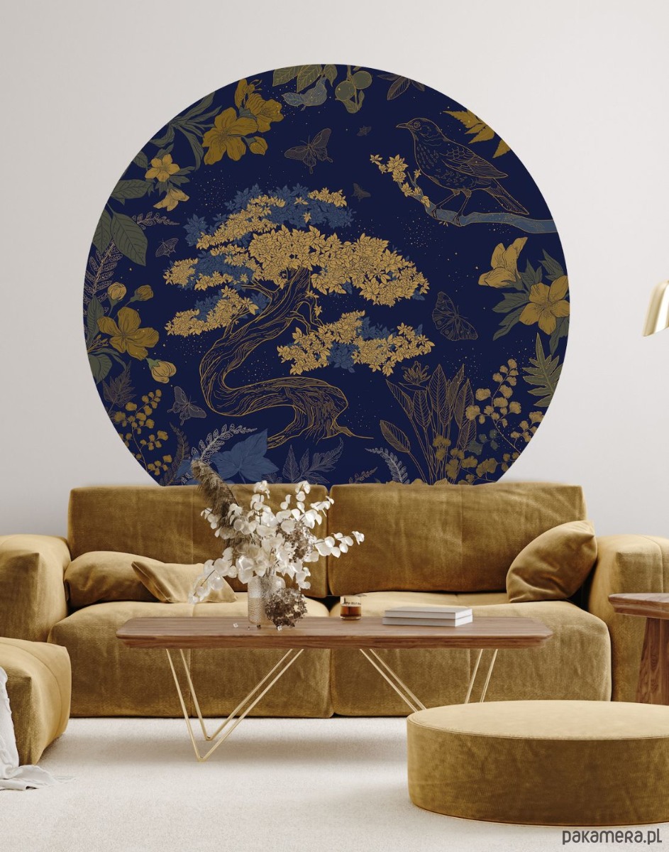 Nowoczesna, granatowa tapeta samoprzylepna w kształcie koła