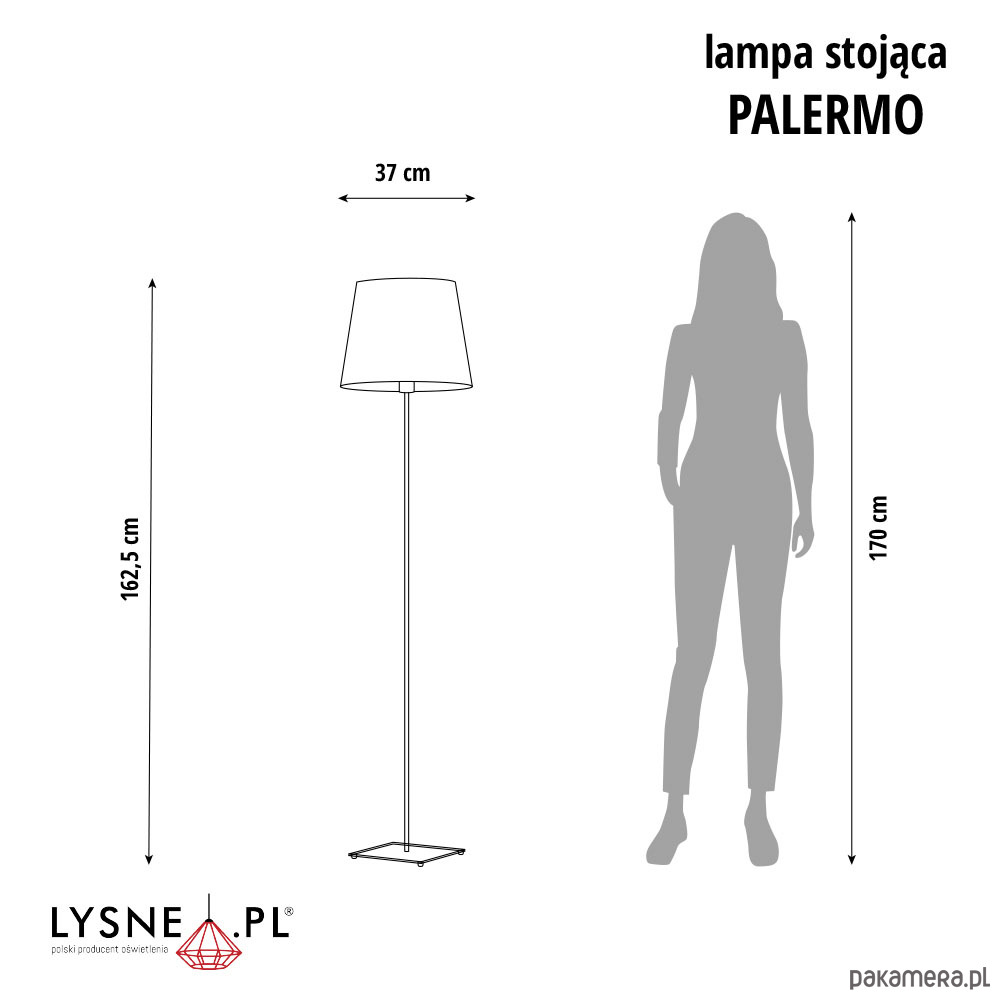 Wymiary lampy: wysokość - 162,5 cm, szerokość - 37 cm