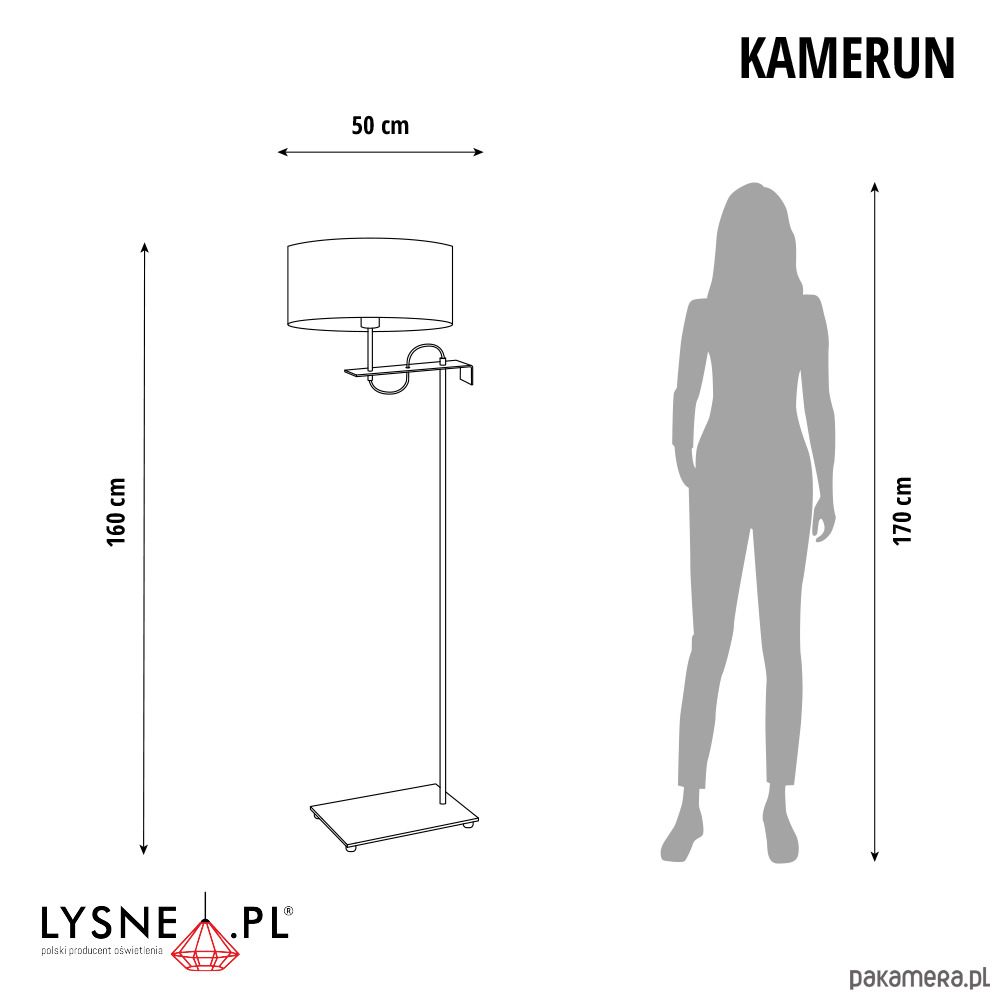 Lampa stojąca KAMERUN to połączenie polskiego designu z funkcjonalnością. Lampa podłogowa KAMERUN wyróżnia się klasyczną konstrukcją uwieńczoną tkaninowym abażurem w kształcie walca oraz przewodem z włącznikiem nożnym poprawiającym komfort użytkowania. Klasyczna lampa ma 160 cm, prostą konstrukcję i znajdzie swoje miejsce w nowoczesnym wnętrzu hotelowym lub doświetli przestrzeń w designerskiej restauracji czy kawiarni. Sprawdzi się także jako salonowa lampa stojąca czy lampa podłogowa w sypialni.