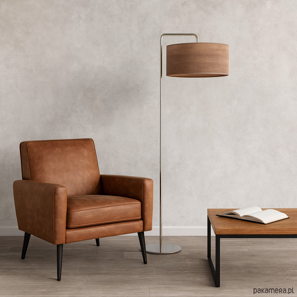 Materiał: stelaż - elementy metalowe, abażur - materiał PVC o strukturze forniru