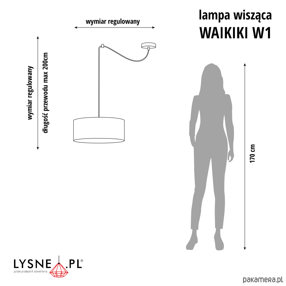 Wymiary lampy: wysokość - regulowana, szerokość - regulowana, długość przewodu max. 200 cm