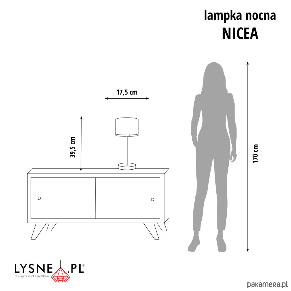 Lampka stołowa NICEA to nowoczesne oświetlenie utrzymane w uniwersalnej koncepcji. Idealnie sprawdzi się jako dodatkowe źródło światła koło łóżka, przy damskiej toaletce czy sekretarzyku. Swoją prostotą i klasyczną formą wpisuje się w wystrój każdego wnętrza. Idealnie wkomponuje się w nowoczesne wnętrza z elementami drewna, szkła i cegły.