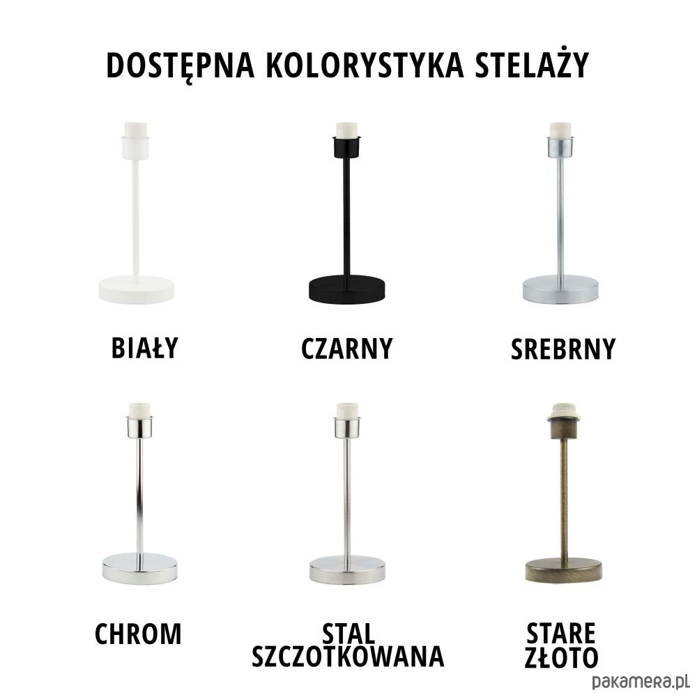 Po dokonaniu zakupu prosimy o przesłanie w wiadomości do sprzedającego informacji jaki kolor abażuru oraz stelaża Państwo wybierają.