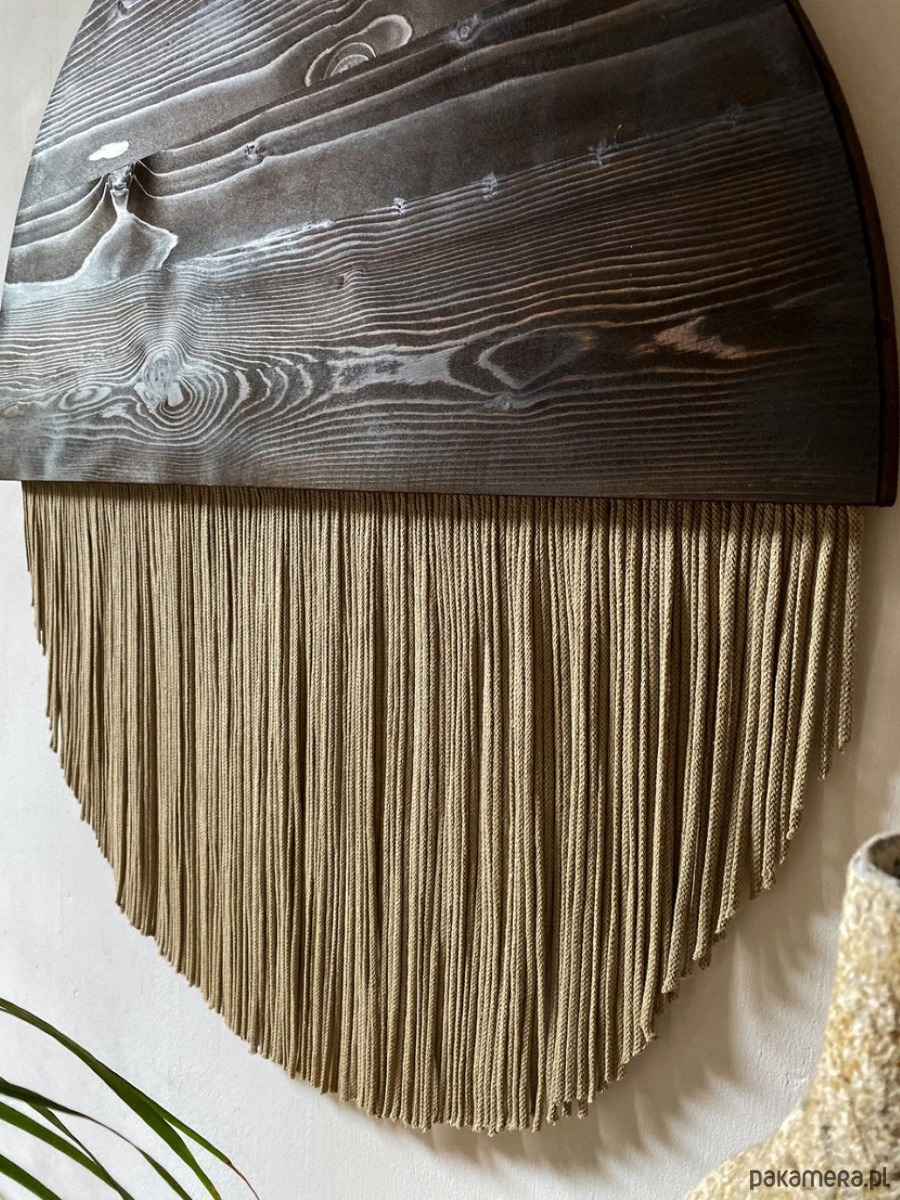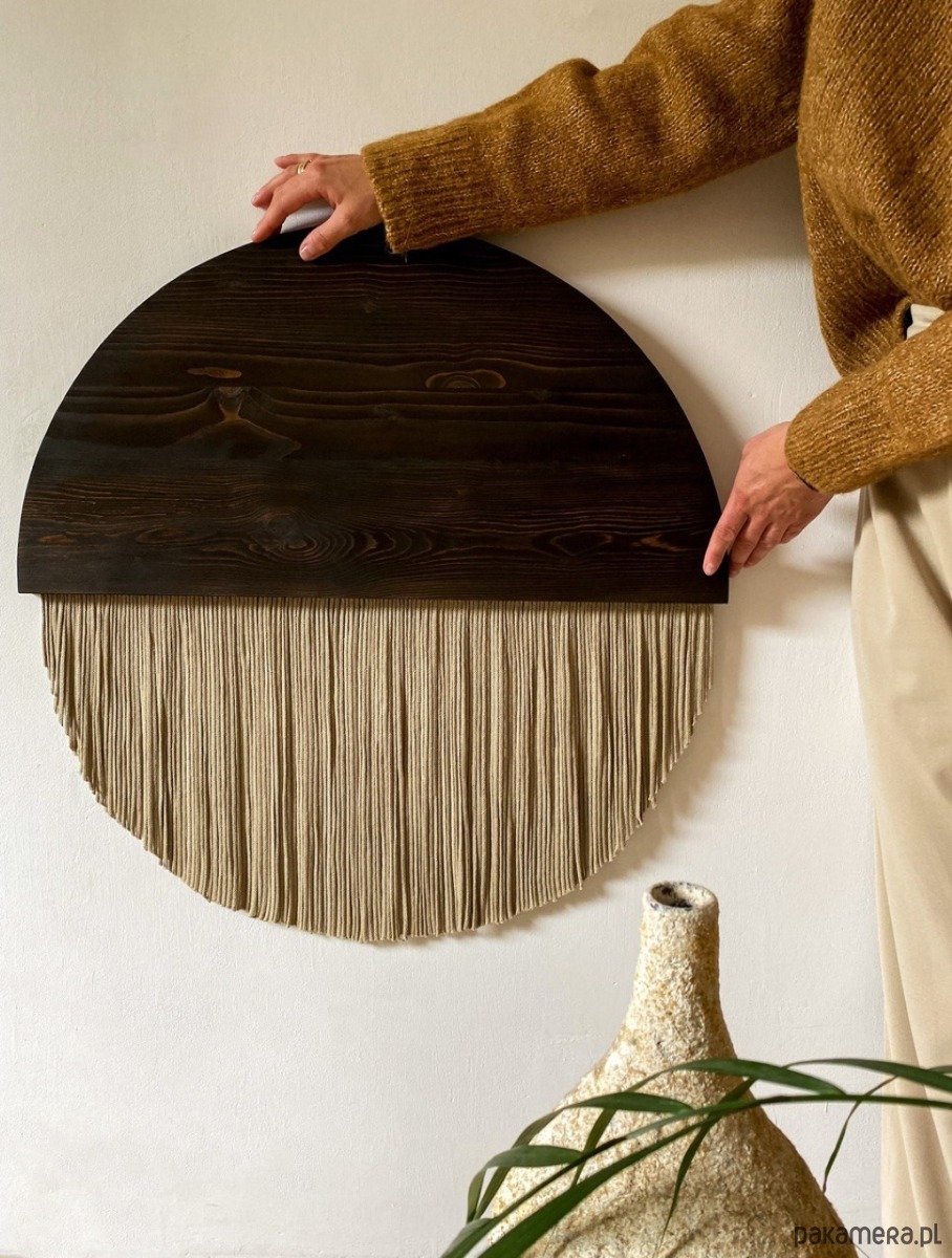 Nasze minimalistyczne makramy na półokrągłych drewnianych bazach dodają charakteru każdemu pomieszczeniu, tworząc harmonijną atmosferę. Dzięki ich unikalnemu wzornictwu, idealnie wpasowują się w nowoczesne aranżacje, podkreślając naturalne piękno materiałów.