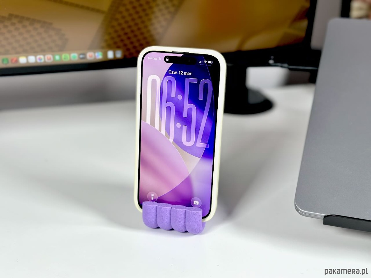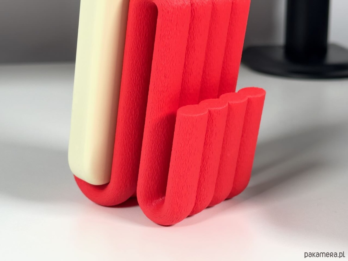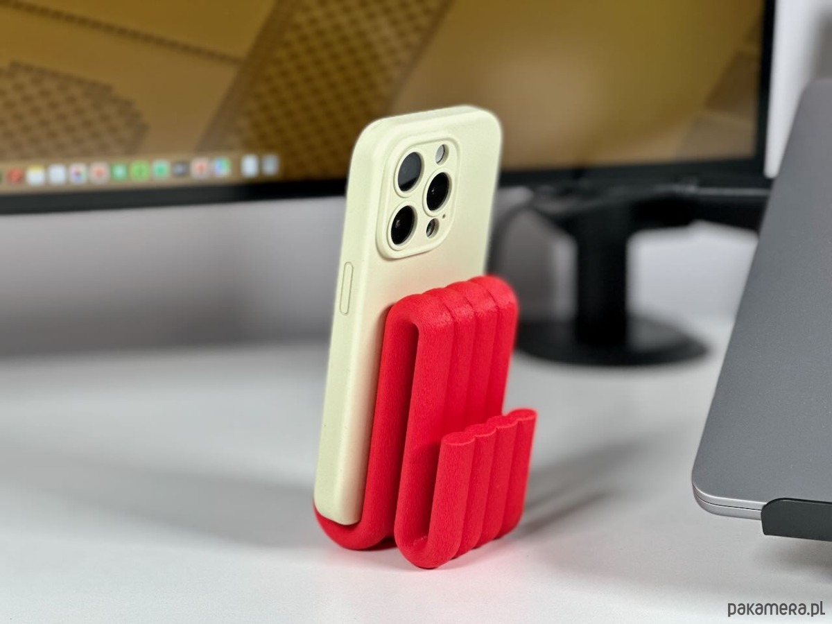 Został wykonany w technologii druku 3D z dbałością o detale. Charakterystyczna, lekko porowata struktura nadaje mu matowe, eleganckie wykończenie, które świetnie współgra z designem nowoczesnych smartfonów.