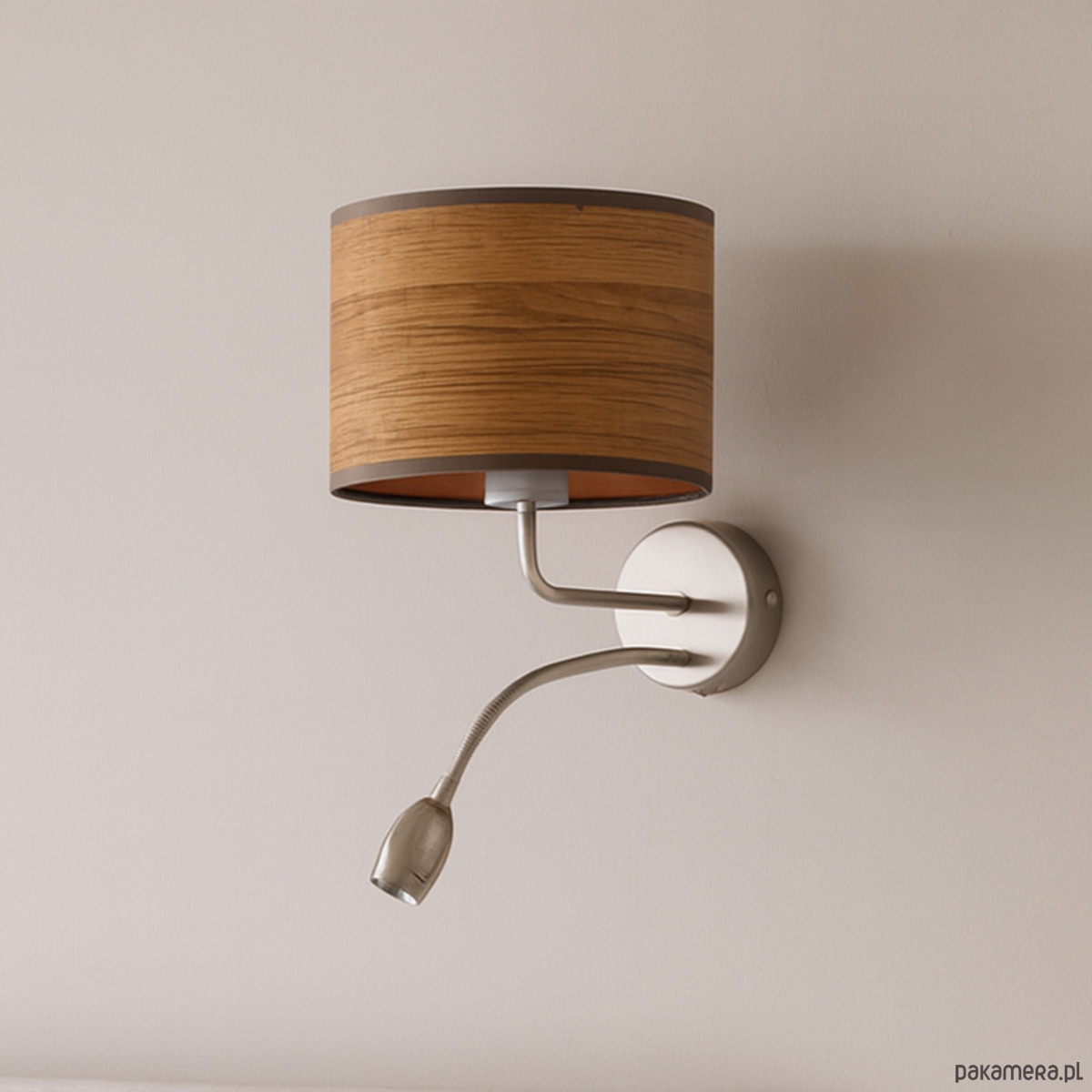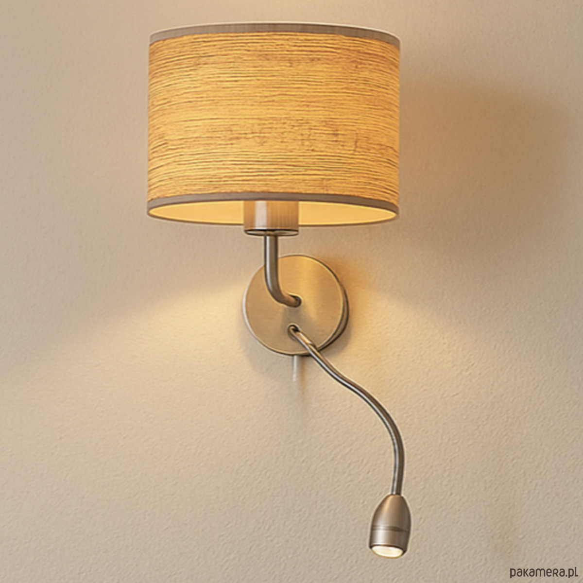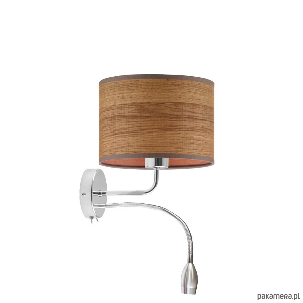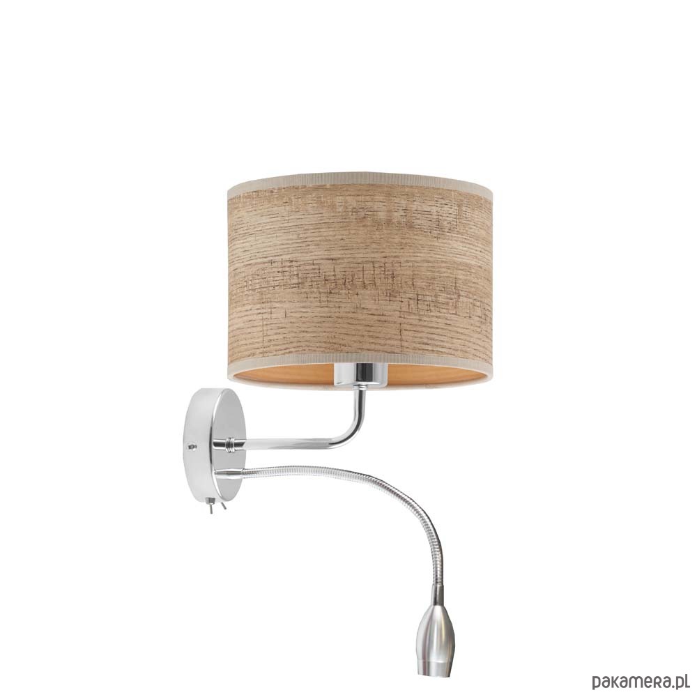 Kinkiet CAPRI ECO posiada 2 źródła światła – główne montowane na oprawę z gwintem E27 o mocy 60W (również żarówki LED) i dodatkowe, umieszczone na oprawie w postaci panelu LED o mocy 5W LED. Peszel LED można regulować poprzez giętkie ramie i ukierunkować światło według potrzeb, aby kinkiet pełnił również funkcję praktycznej lampki do czytania. Oprócz kierunkowego strumienia światła oddawanego przez peszel LED, lampa ścienna oferuje przytulne oświetlenie główne – skierowane ku górze i dołowi a rozproszone na powierzchni całego abażura. Na stelażu lampy ściennej zamontowano 2 przełączniki dźwigniowej, dzięki którym ze źródeł światła można korzystać oddzielnie i niezależnie. Jest to niezwykłe komfortowe rozwiązanie, które powoduje, że z kinkietu korzystamy z przyjemnością.