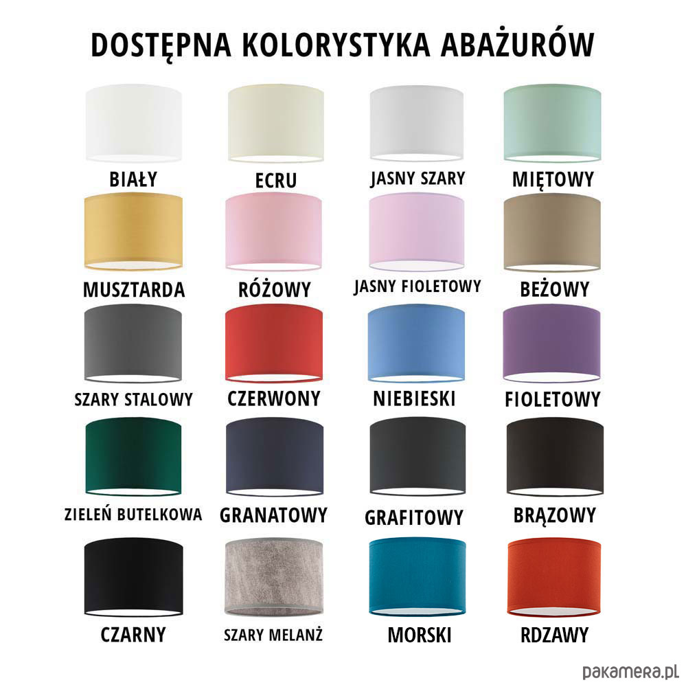 DOSTĘPNE KOLORY ABAŻURÓW: (do wyboru)
