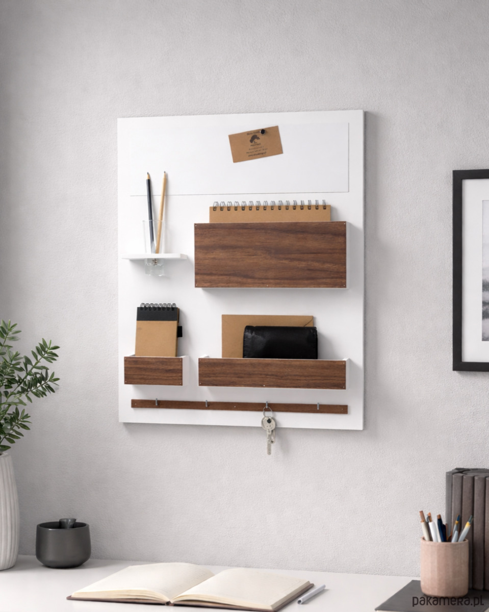 Utrzymaj porządek w pięknym stylu dzięki nowoczesnemu organizerowi ściennemu, który łączy funkcjonalność z minimalistycznym designem.