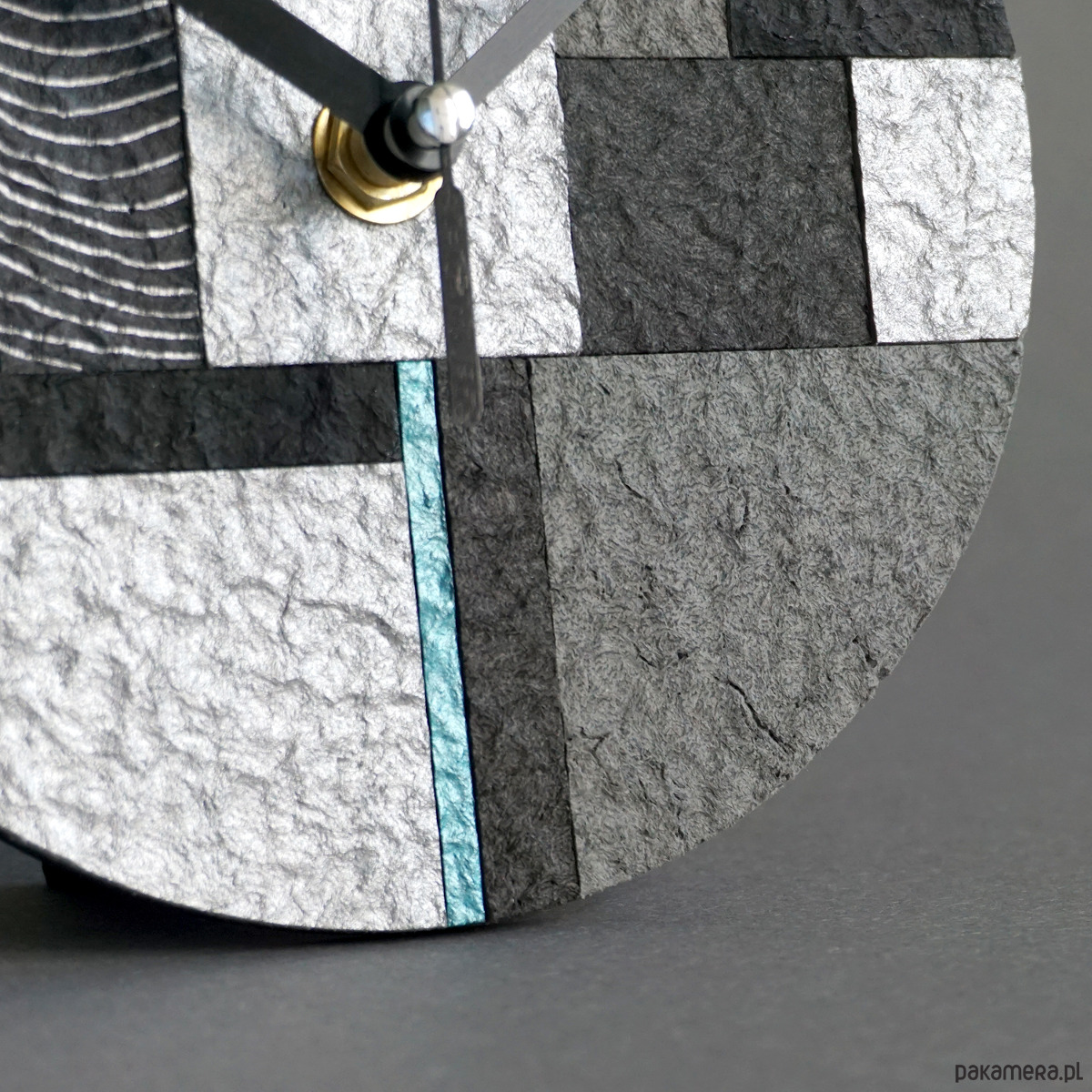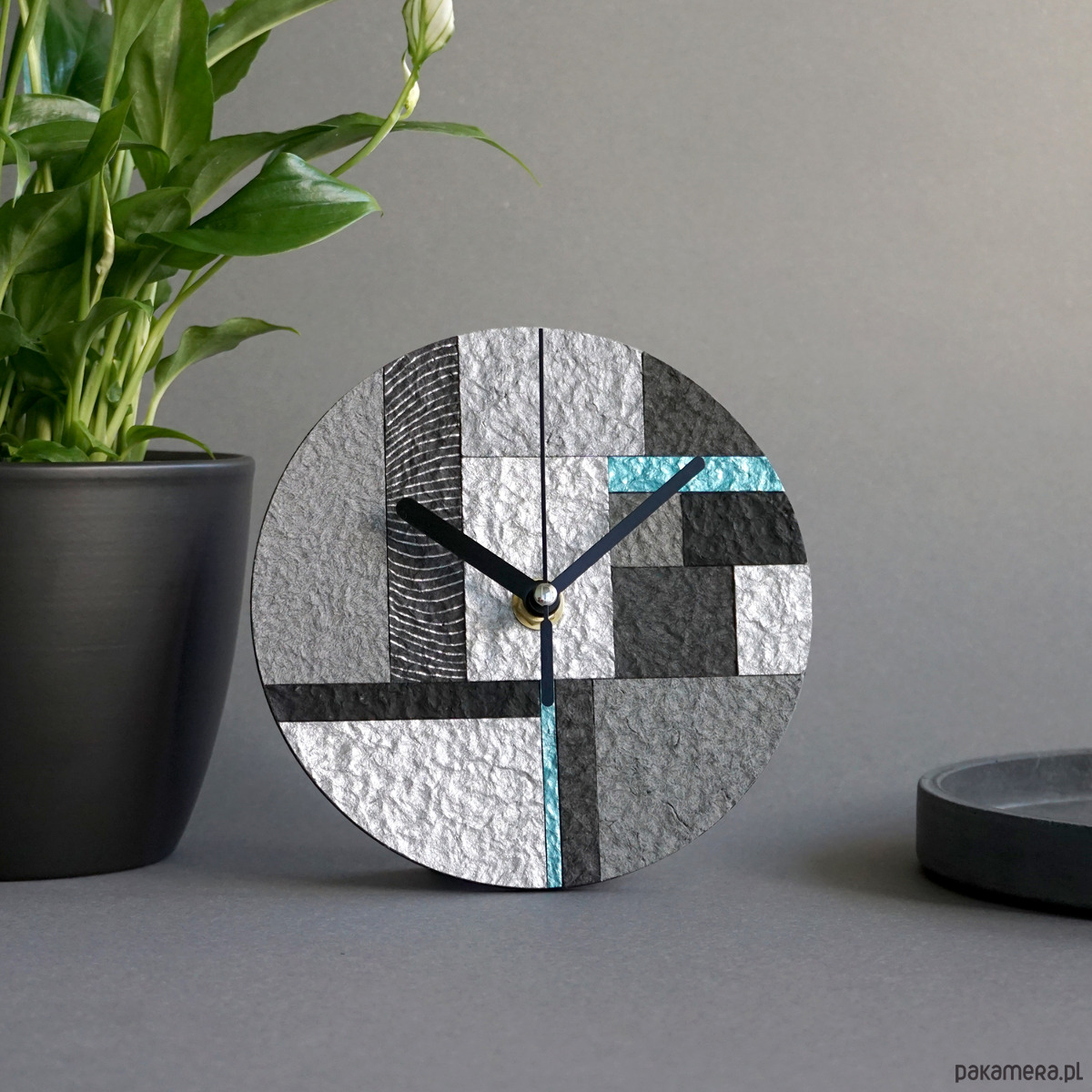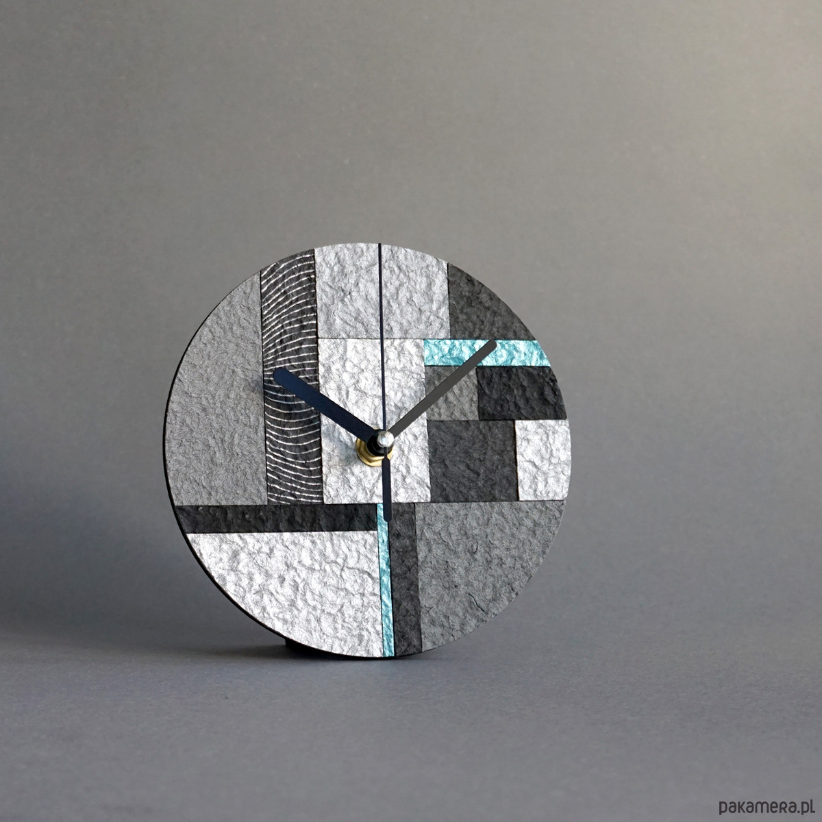 Unikatowy zegar stojący ze wzorem mozaiki wykonany ręcznie zgodnie z ideą less waste - z papieru z odzysku.