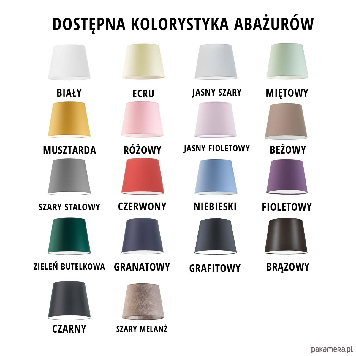 DOSTĘPNE KOLORY ABAŻURÓW: (do wyboru)