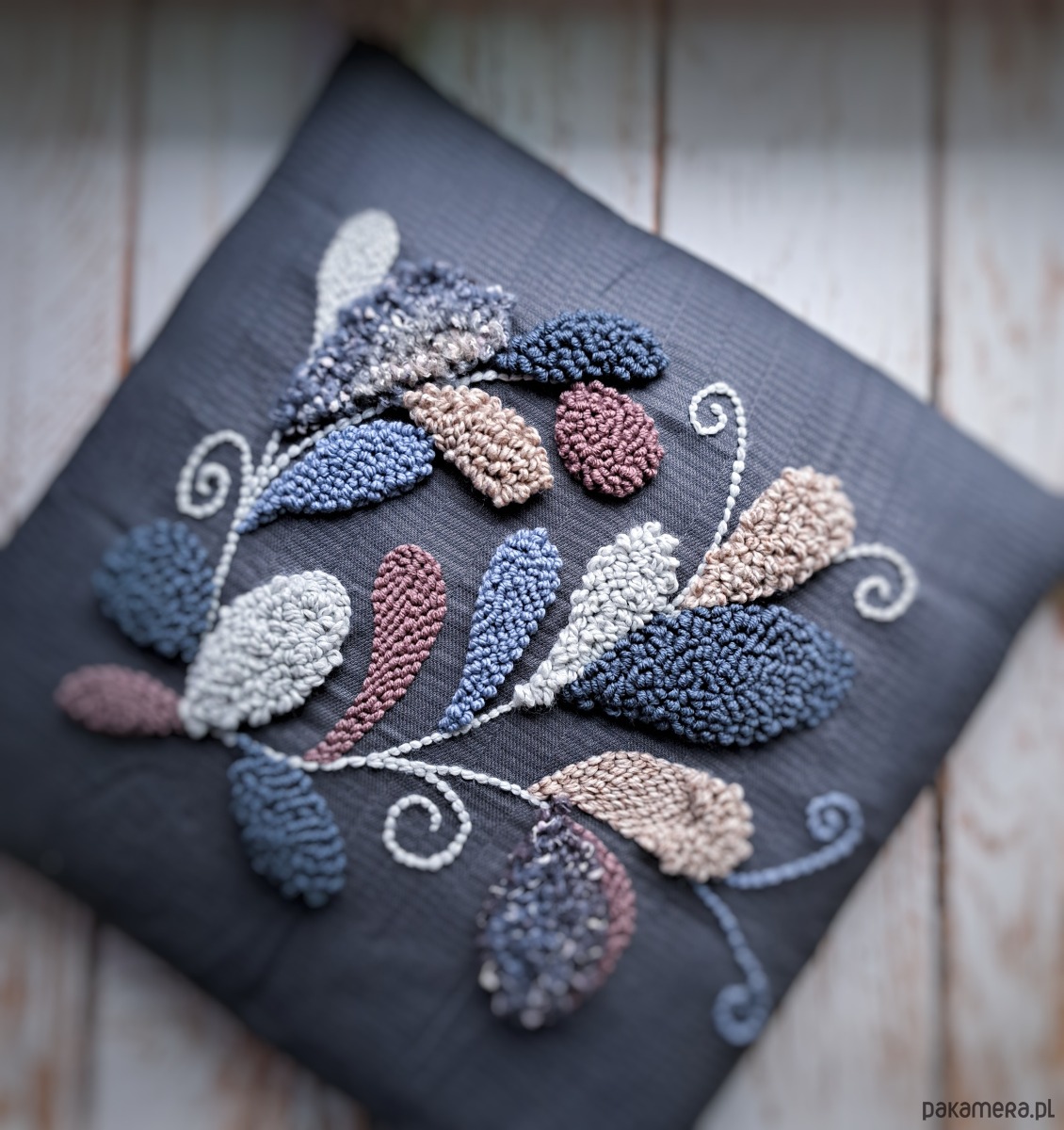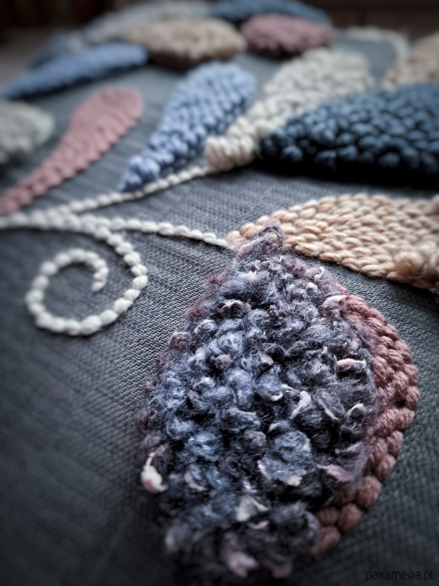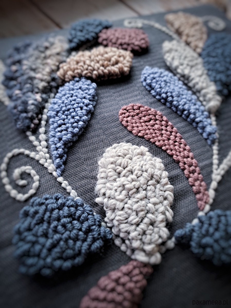 Ręcznie wykonana poduszka w technice punch needle, w pieknych stonowanych odcieniach.
