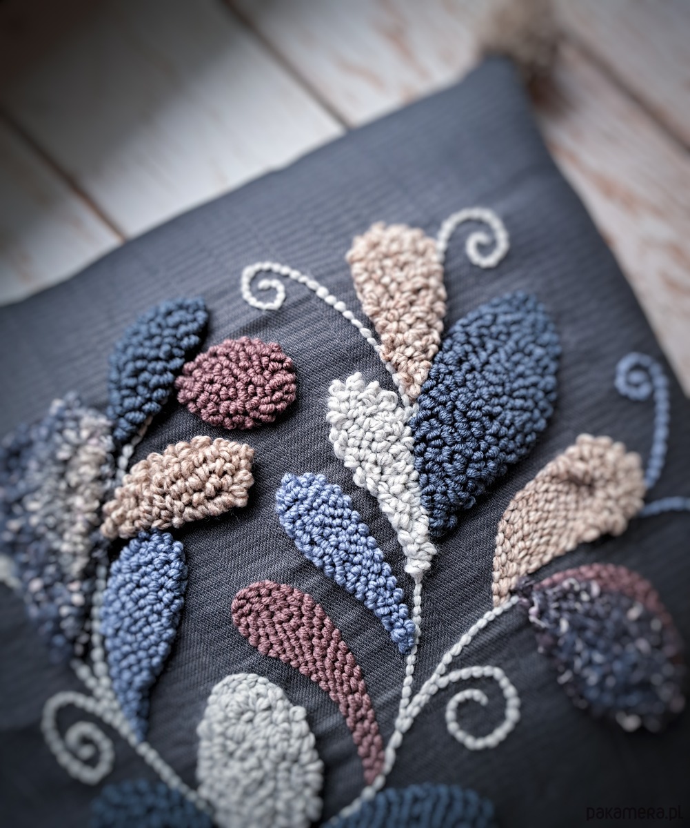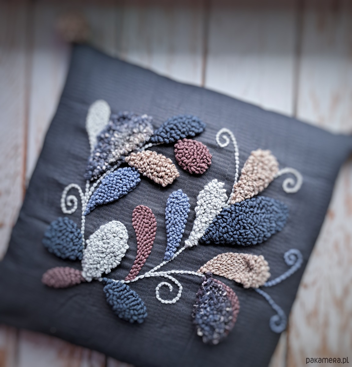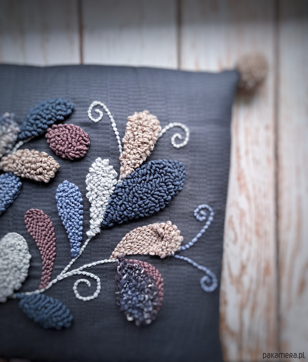Ręcznie wykonana poduszka w technice punch needle, w pieknych stonowanych odcieniach.
