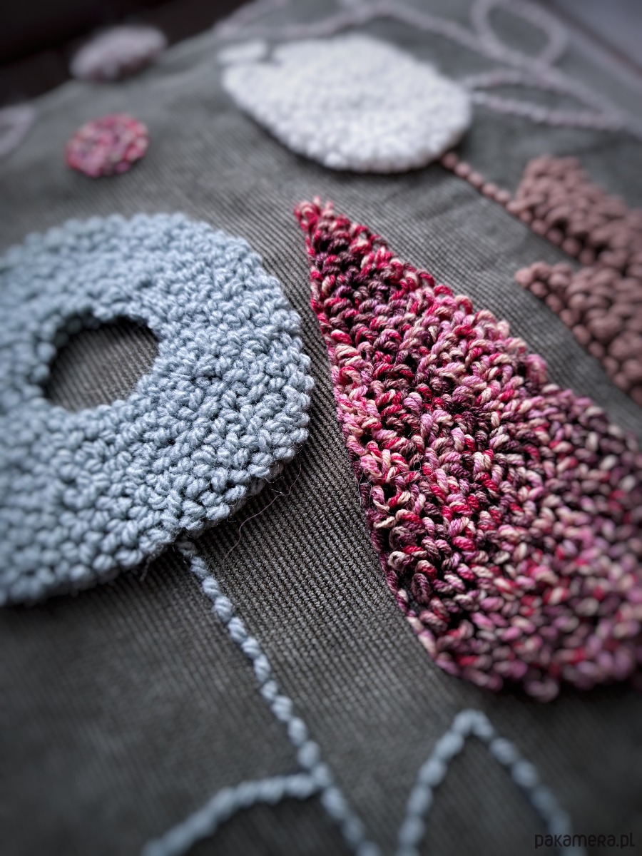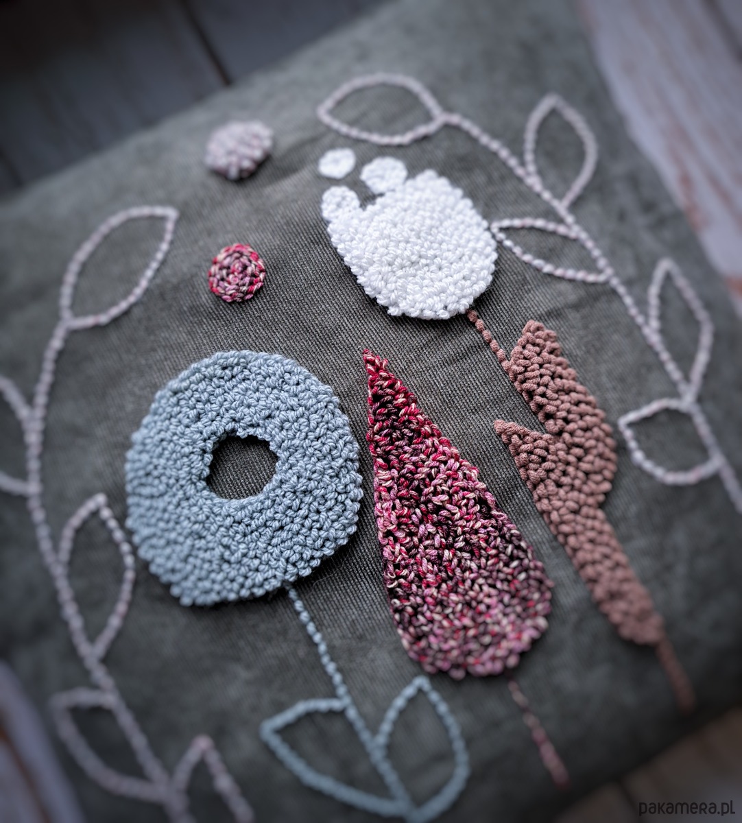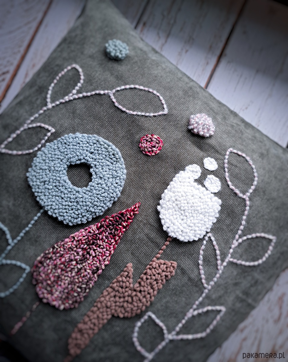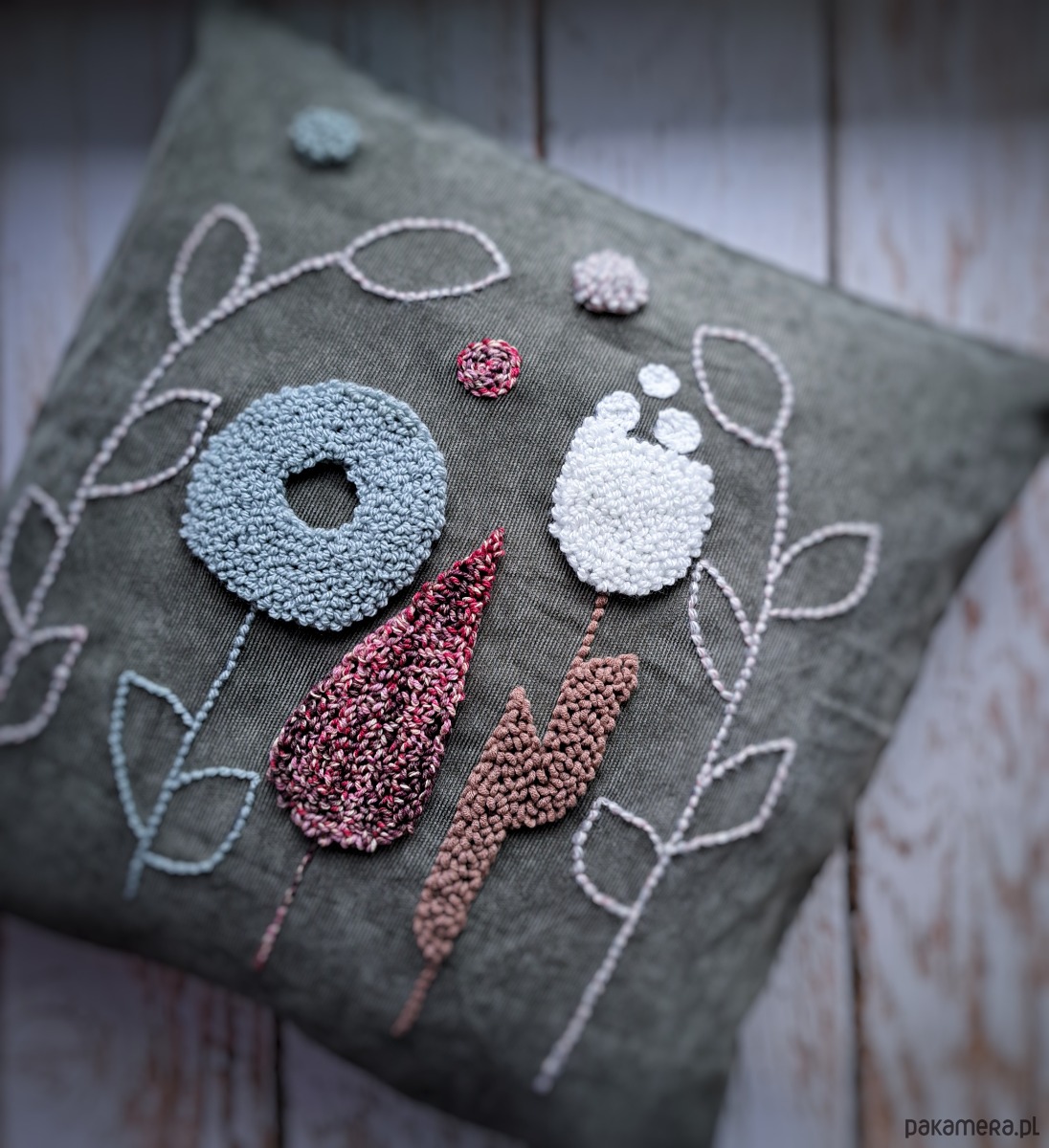 Ręcznie wykonana poduszka w technice punch needle, w pieknych stonowanych odcieniach.