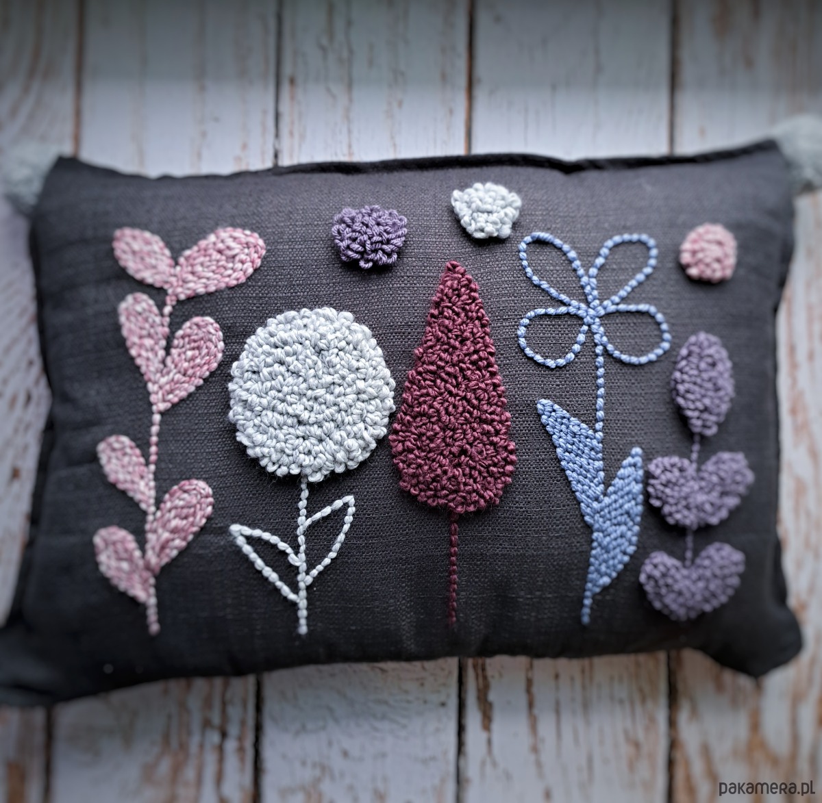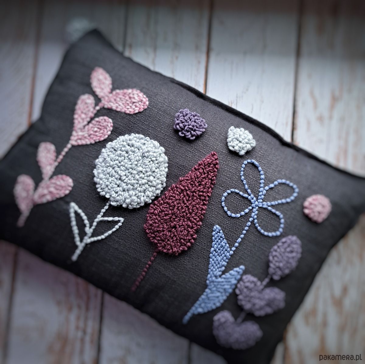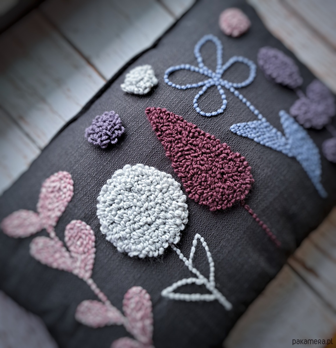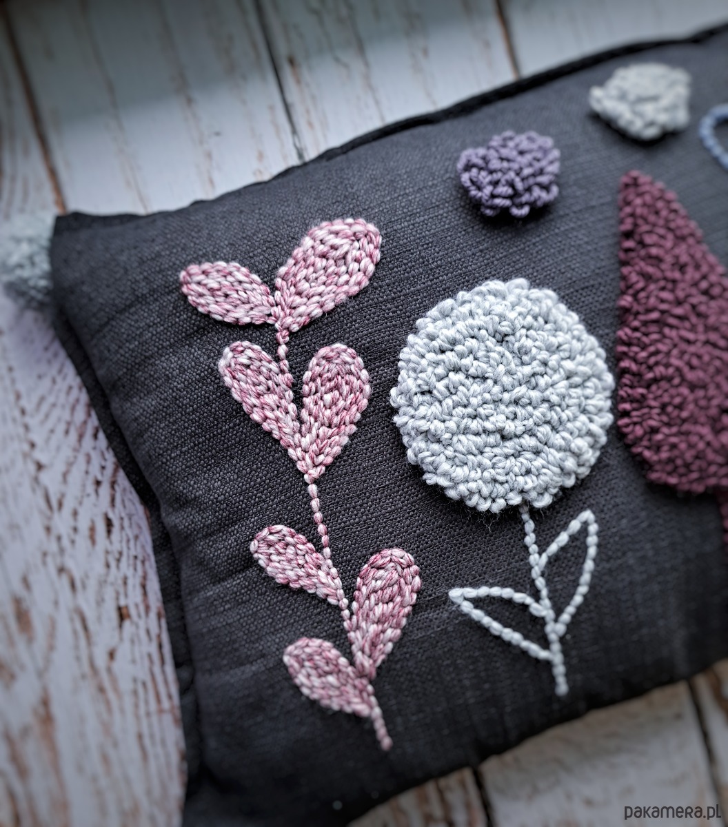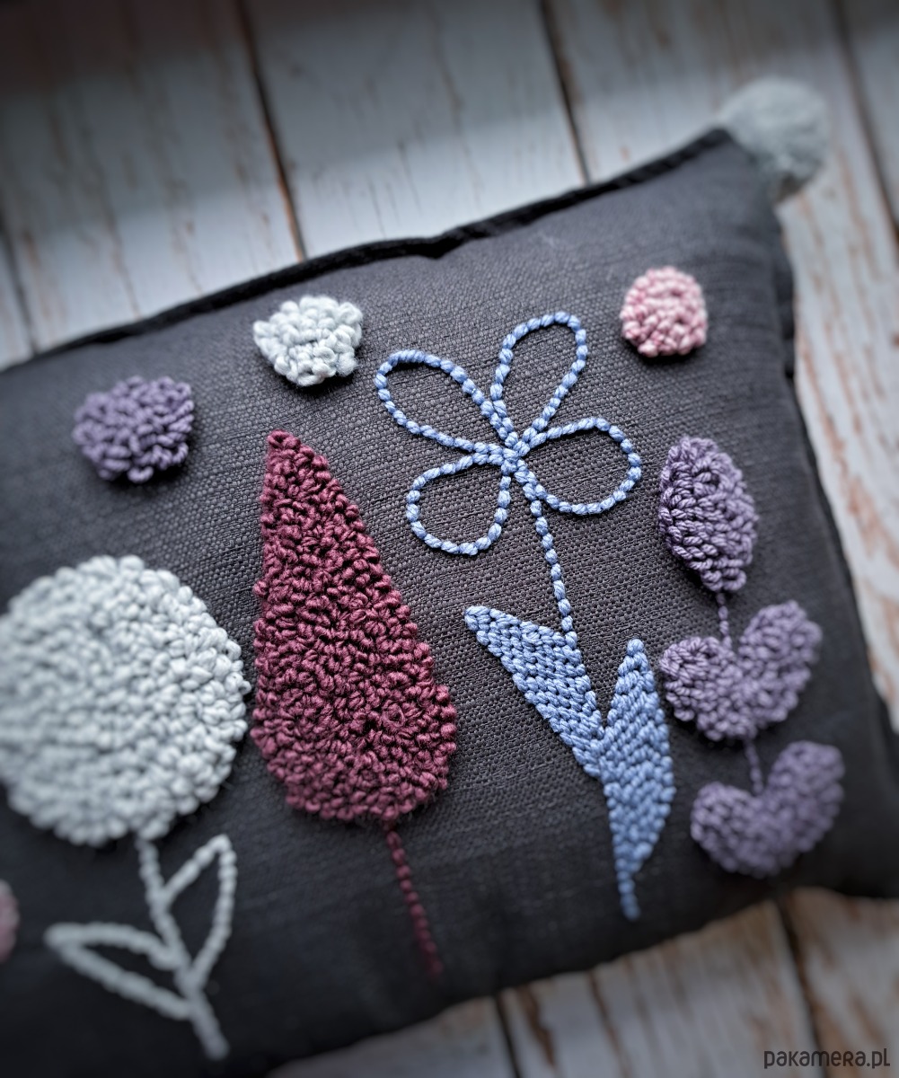 Ręcznie wykonana poduszka w technice punch needle, w pieknych stonowanych odcieniach.