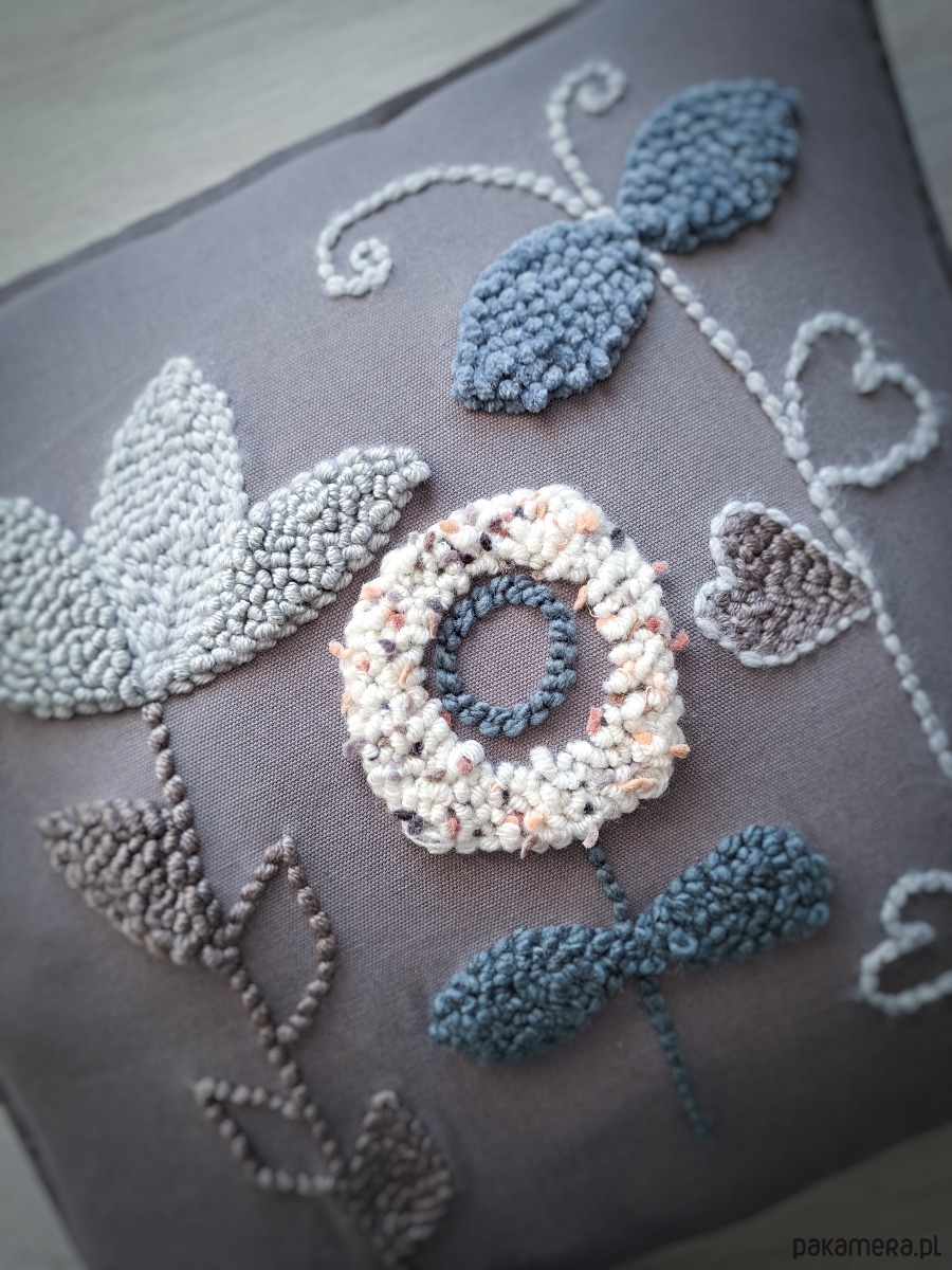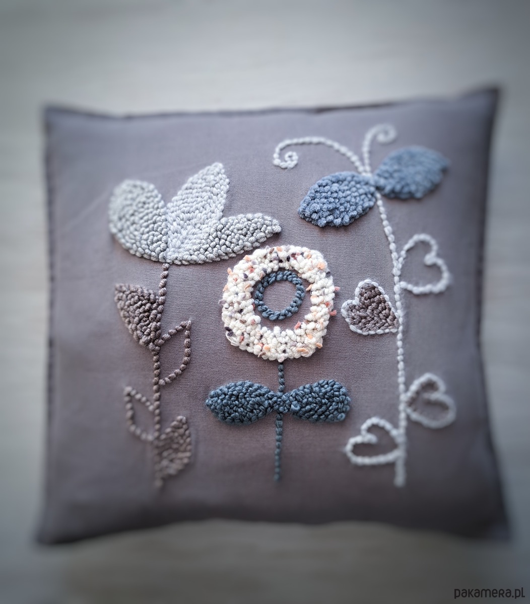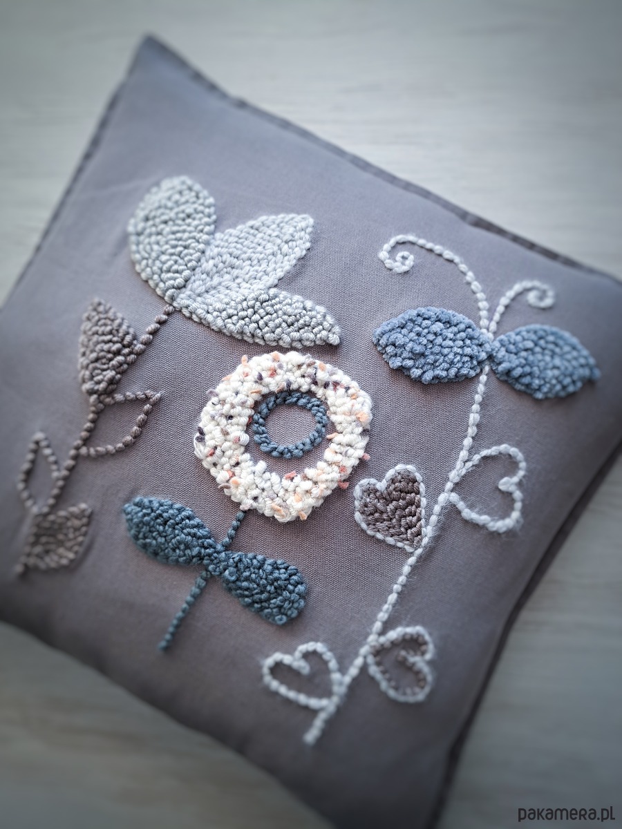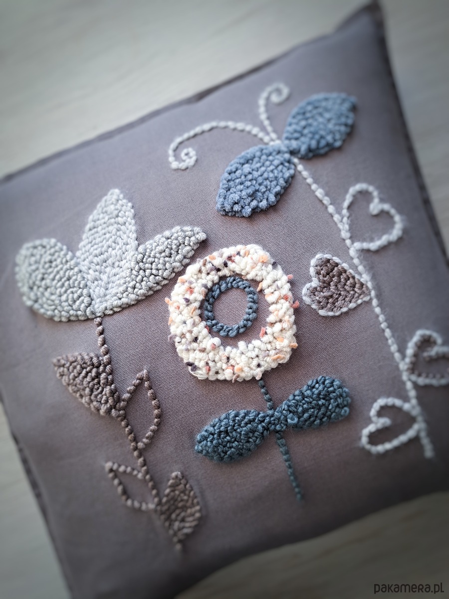 Ręcznie wykonana poduszka w technice punch needle, w pieknych stonowanych odcieniach.