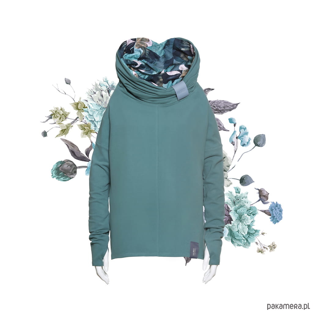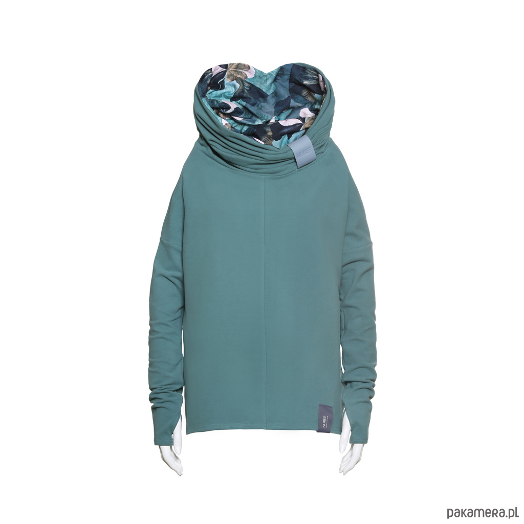 BLUZA Z KOMINEM NUBLOUSE - gładka z wnętrzem komina we wzór. Uszyta z dzianiny z pętelką z lewej strony. Posiada prosty komin, który można nosić jako kaptur.
