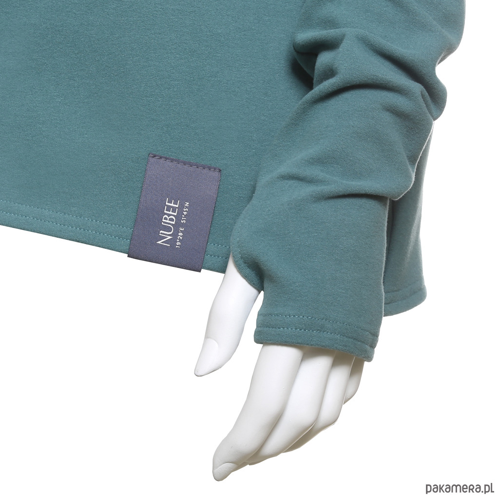 Forma oversizowa, luźną na sylwetce z dopasowanymi rękawami zakończonymi dziurką na kciuk. Kieszenie w szwach bocznych.