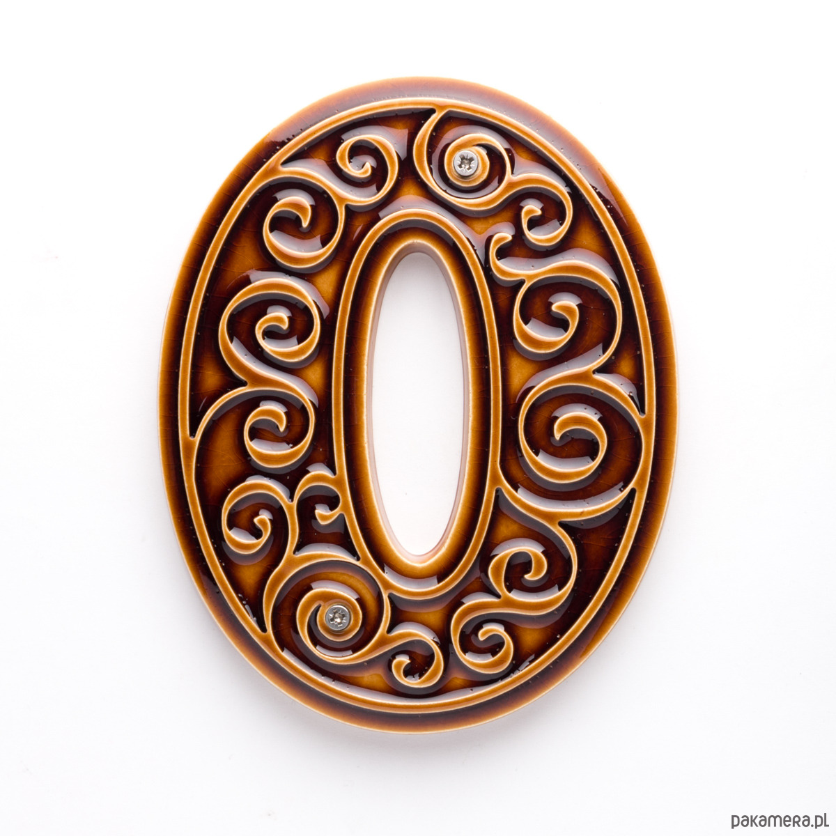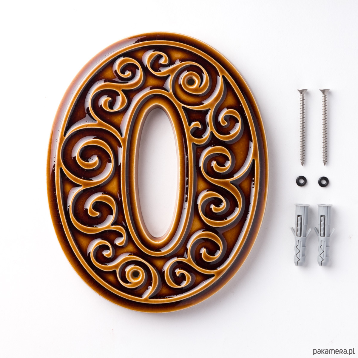 Numer domu, cyfra 0 brązowo-miodowa, do przykręcenia