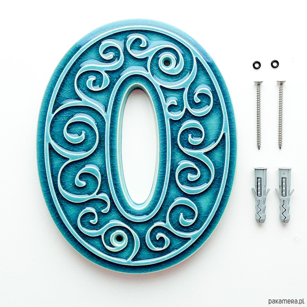 Numer domu, cyfra 0 turkusowa, do zawieszenia