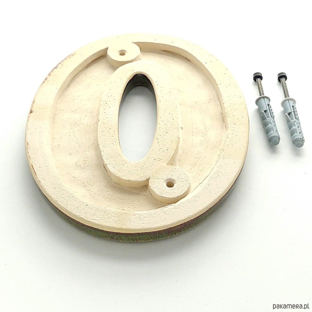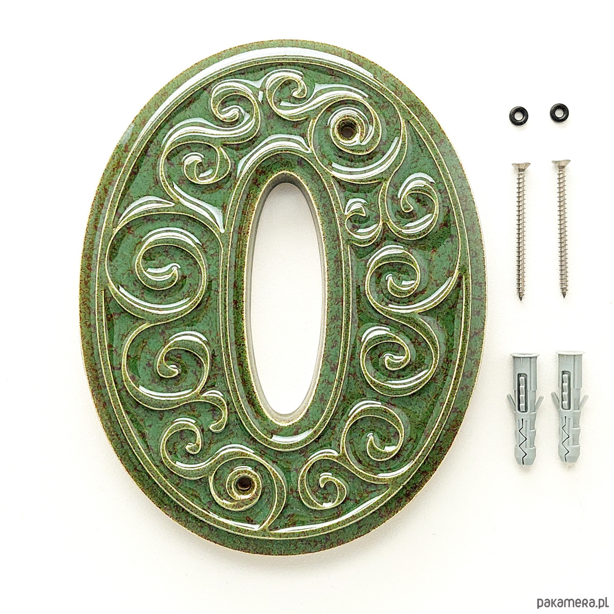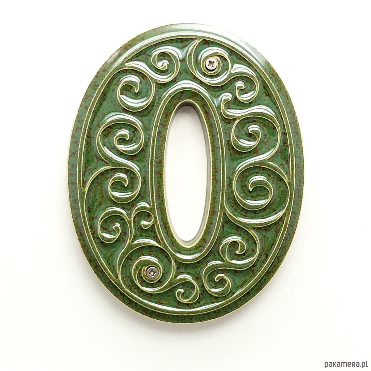 Numer domu, cyfra 0 zielono-brązowa, do przykręcenia