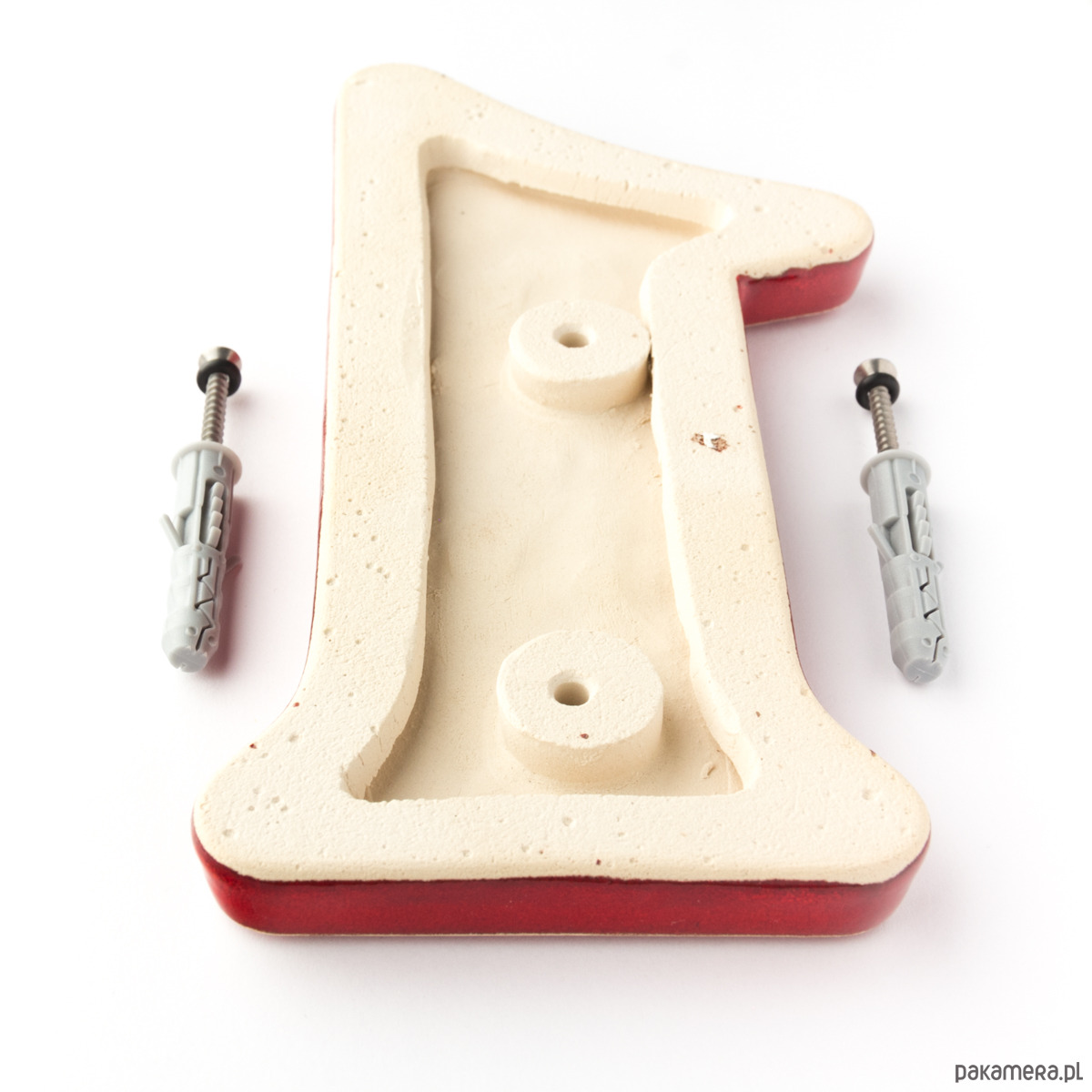 – dwie koszulki do kołków rozporowych abyś mógł przykręcić cyfrę do powierzchni budynku np mur z cegły, betonu, pustaków i.t.p. (oczywiście w przypadku montażu do drewna koszulki są zbyteczne, bo używasz tylko metalowych wkrętów)