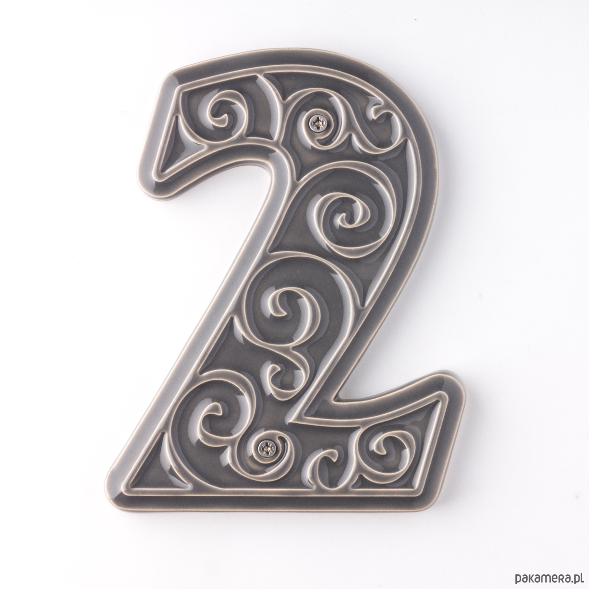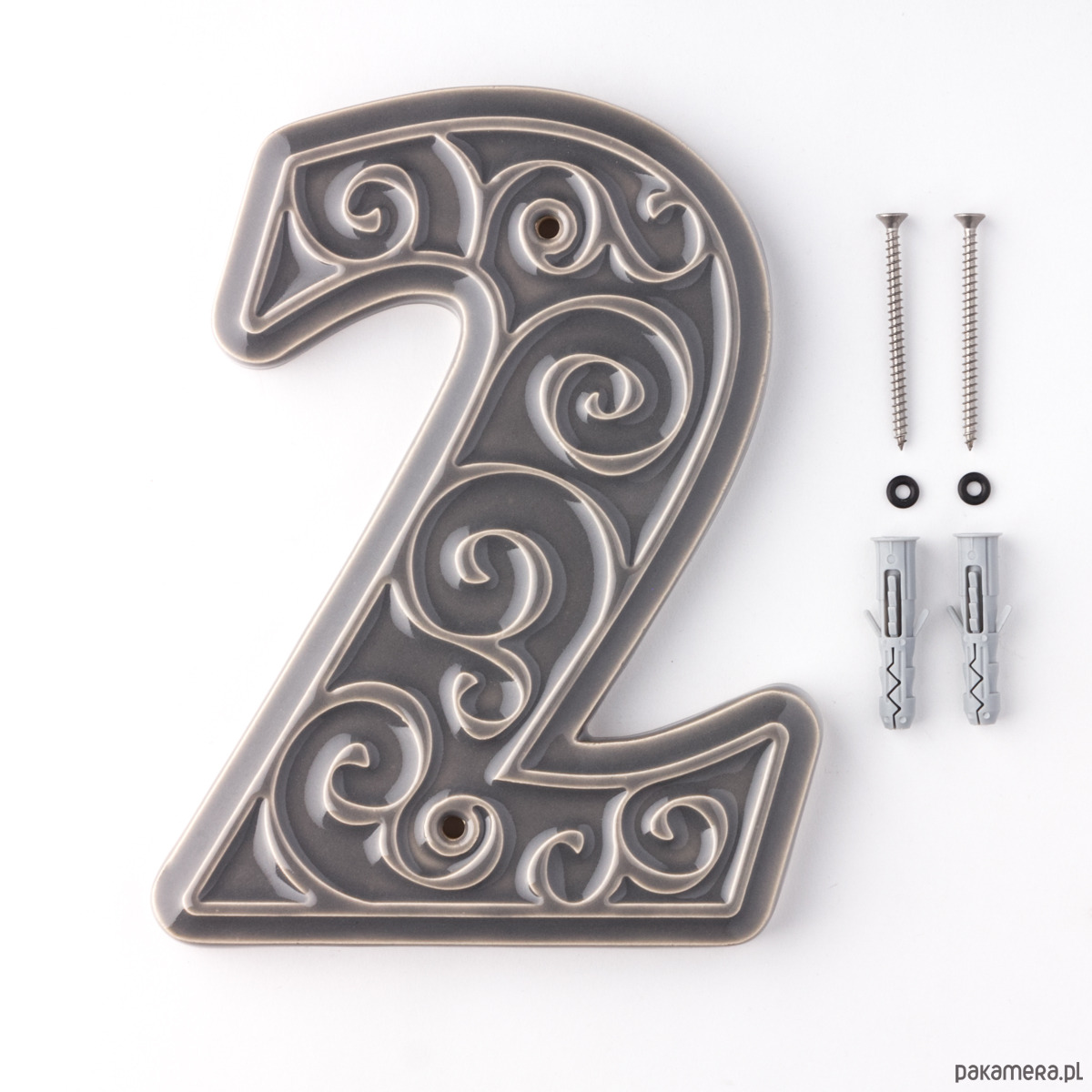 Numer domu, cyfra 2, szary, do przykręcenia