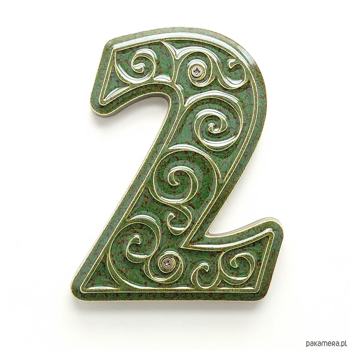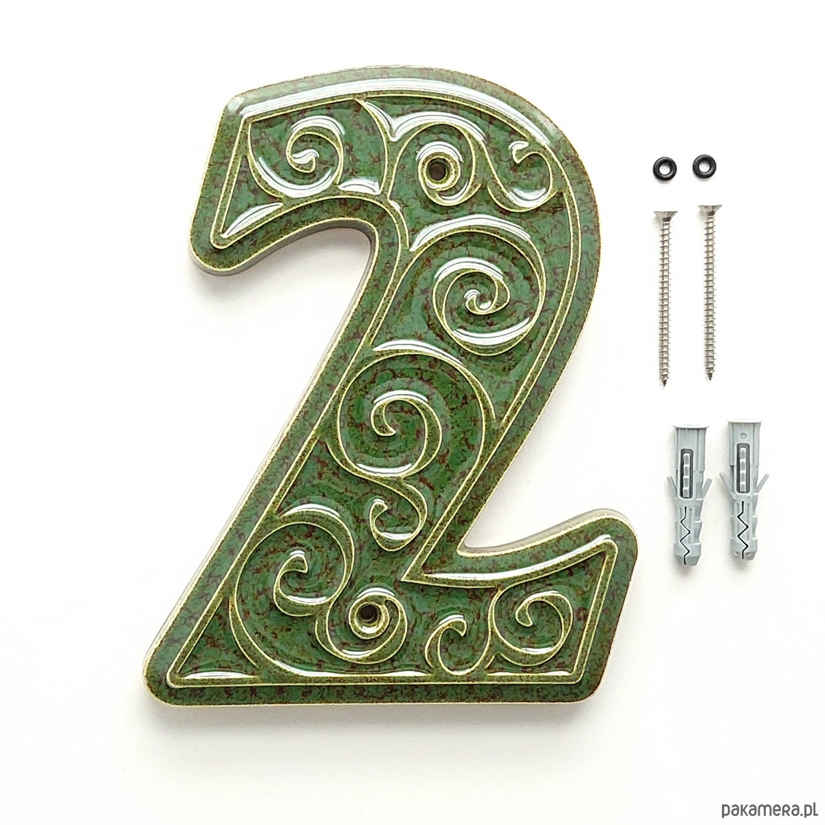 Numer domu cyfra 2 zielono-brązowa, do zawieszenia
